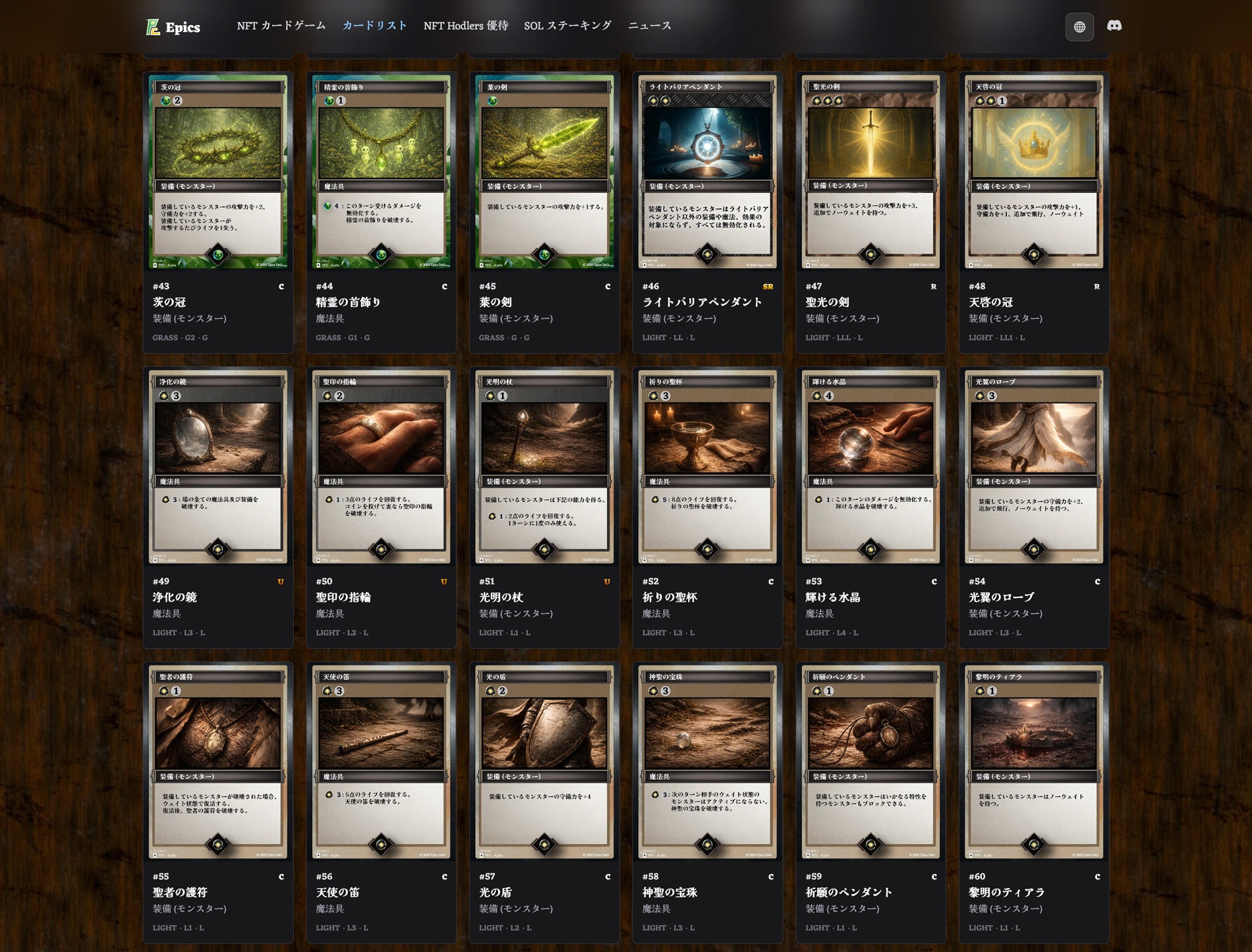 今回公開されたのは、光属性に属する魔法カード、装備・魔法具カード、モンスターカードの全デザインです。公開されたカードはすべて、Buidlers Guild NFTカードリストページに反映されています。