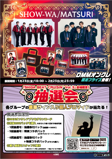 1月24日(土)開催『SHIGA BEAT CRUISIN’ Vol.3』@近江八幡市文化会館大ホールにDMMオンクレがブース出展!抽選制のお見送り会や、直筆サイン入り賞品が当たる抽選会を実施!