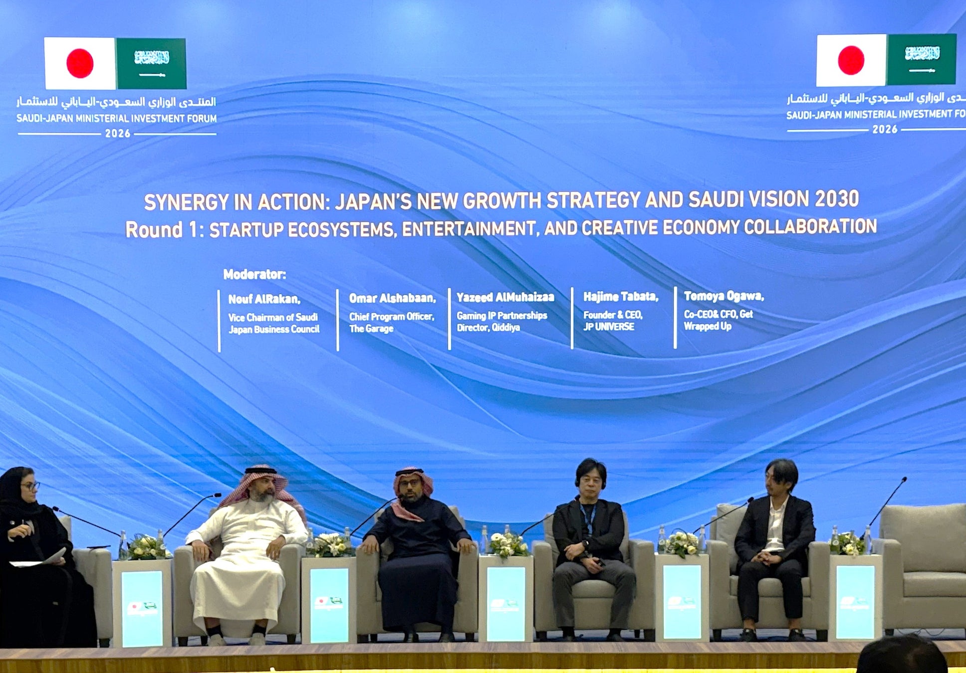本フォーラムは、日本とサウジアラビアの政府‧ 民間企業が一堂に会し、両国間における投資および産業協力の可能性を議論する場として開催されました。ゲラッパ!は、日本側のエンターテインメント・ゲーム分野を代表する企業の一社として、公式セッション「SYNERGY IN ACTION: JAPAN’S NEW GROWTH STRATEGY AND SAUDI VISION 2030」に日本側登壇者として参加しました。