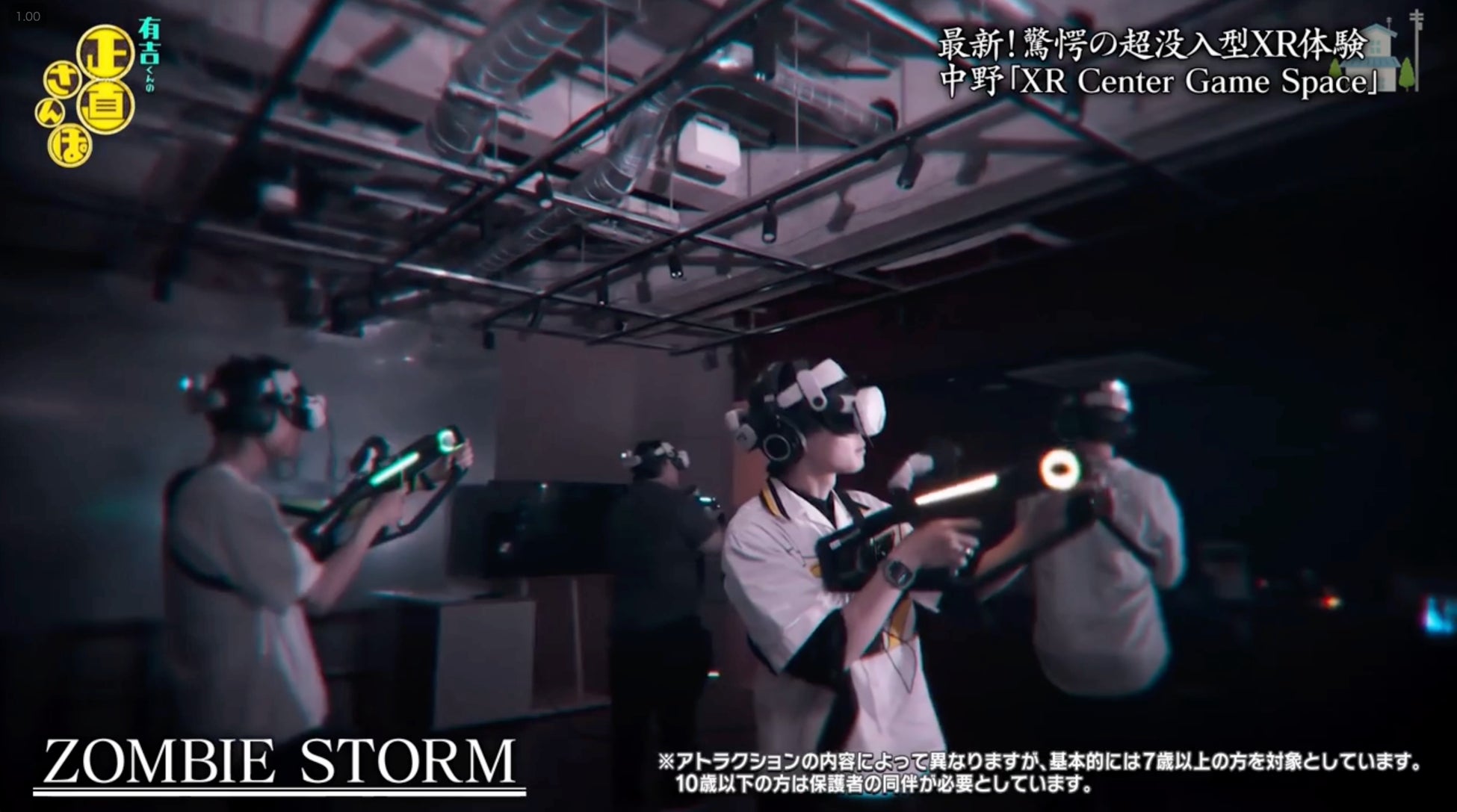 株式会社日本XRセンター(本社:東京都中野区、代表取締役CEO:小林大河)が運営する直営店舗「XR Center Game Space(中野ブロードウェイ店)」が、2026年1月17日(土)放送のフジテレビ系人気番組「有吉くんの正直さんぽ」にて特集されました。番組内では、有吉弘行さんをはじめとする出演者が、当社の最新XRアトラクションを体験。振動スーツとVRゴーグルを装着し、全身でゾンビと戦う「ZOMBIE STORM」などの没入体験に、普段は冷静な出演者たちも思わず声を上げる場面が放送され、大きな反響を呼んでいます。