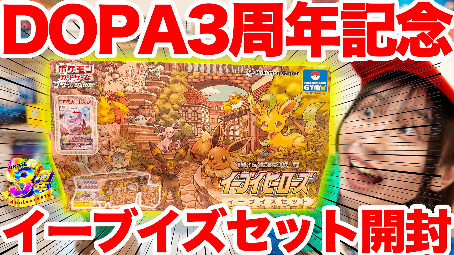 動画内では3周年を記念して「イーブイヒーローズ イーブイズセット」を開封し、当たったカード全てを視聴者にプレゼントするという豪華企画を実施。