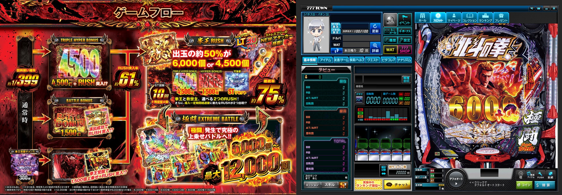 暴凶星の潜在能力のすべてを開放。大当たり出玉6,000個~最大12,000個の極限へ至る出玉性能を誇る「極闘」も忠実に再現!