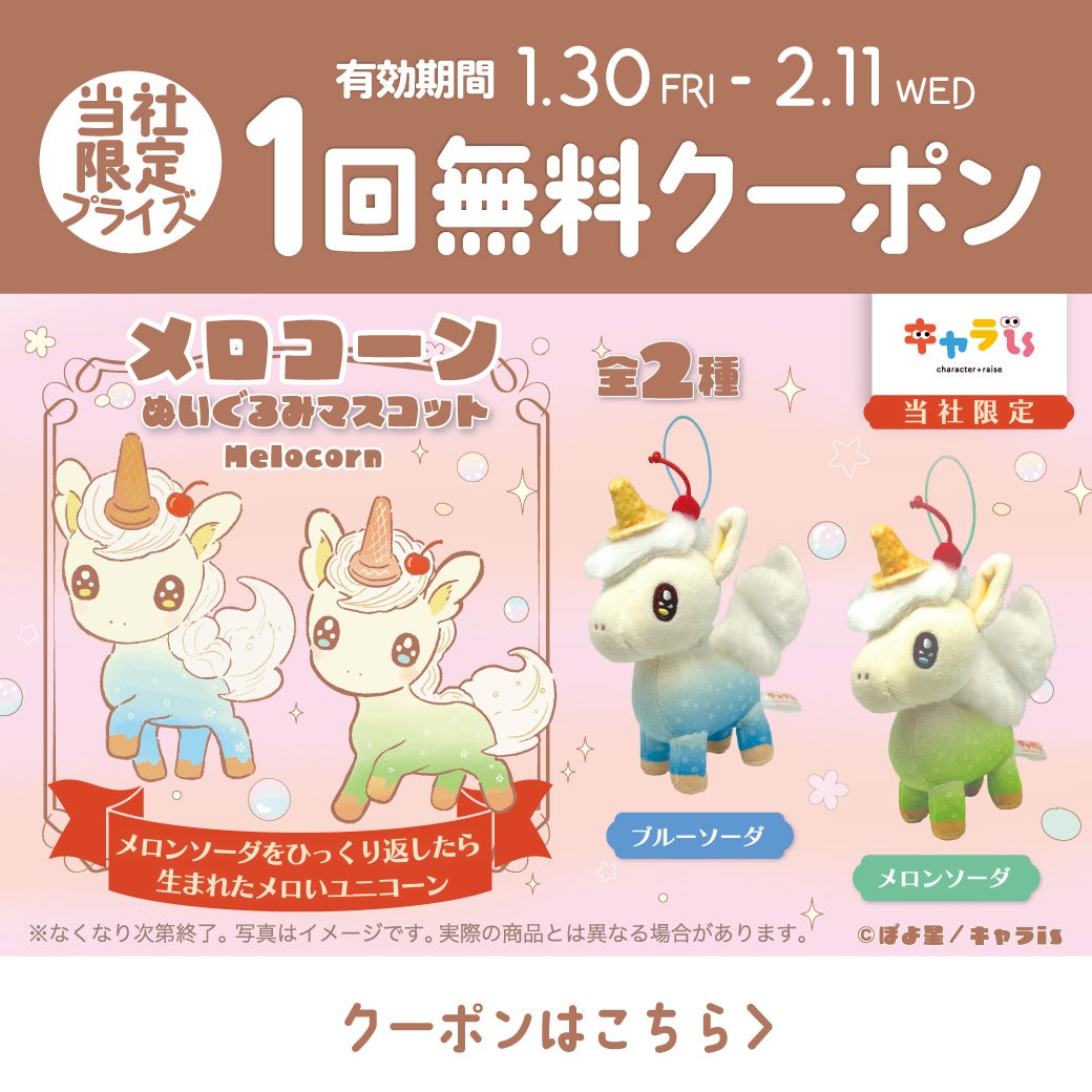 ※「メロコーン」が対象のクレーンゲームが1回無料になります。