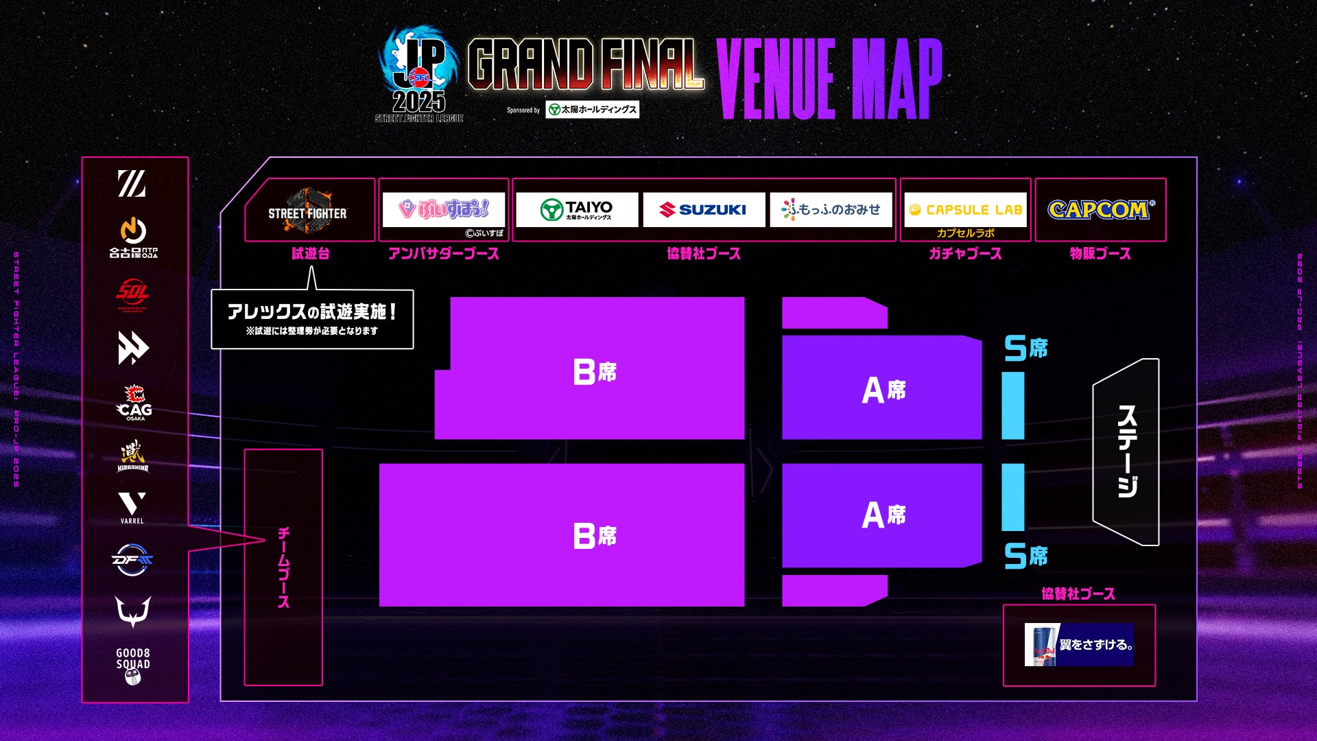 グランドファイナル会場では、「ストリートファイターリーグ」特別イラストを使用したグッズを始め、他にも様々なグッズを販売予定です。