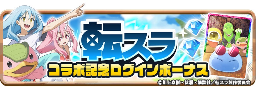 本コラボを記念して、『劇場版 転生したらスライムだった件 蒼海の涙編』をモチーフにしたコラボモンスター、ネンドロ種「リムル・リゾート」、キュービ種「シュナ・リゾート」、コラボアシストカード「【波乗りテンペスト】リムル&ヴェルドラ」、「【陽だまりの巫女姫】シュナ」が手に入るガチャイベント「転スラ・リゾートフェス」を開催します。「転スラ・リゾートフェス」では、★3モンスターの出現確率が15%→20%にアップします。