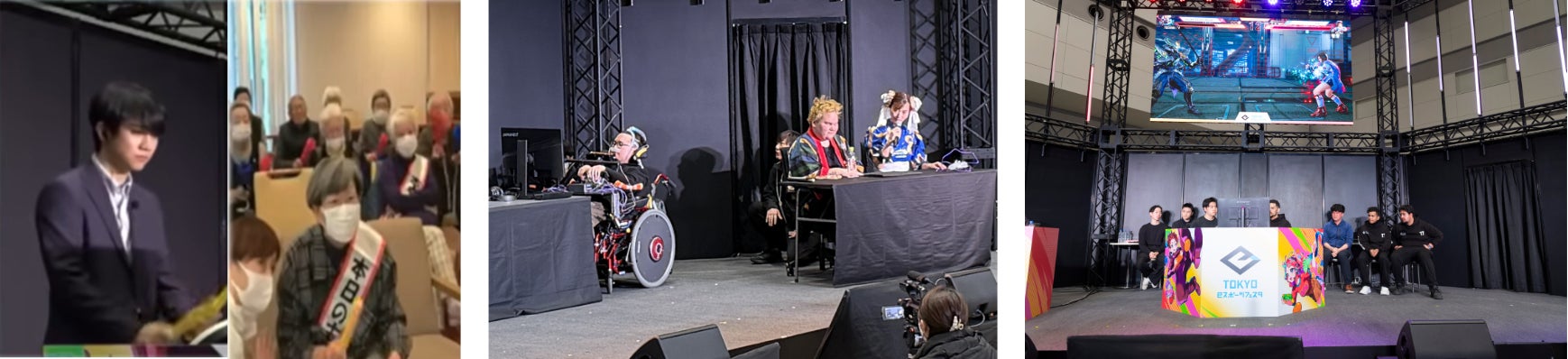 会期中には、eスポーツを通じた様々な交流企画を実施しました。会期初日の「eスポーツ企業交流会」では、社内でのeスポーツ活用に関心の高い企業担当者に対し、eスポーツを活用した採用・エンゲージメント向上の事例を紹介するミニセミナーを開催しました。また、「シニア交流イベント」では、会場と高齢者施設をオンラインで繋ぎ、ゲーム実況者のごにはさんとシニアの方が「太鼓の達人 ドンダフルフェスティバル」を使って対戦をしました。会期2日目の「海外交流企画」では、ZETA DIVISIONトークセッションのほか、「鉄拳8」を使っての東京と海外の学生による交流試合を実施。学生同士の試合は、接戦の末、海外学生チームが勝利しました。