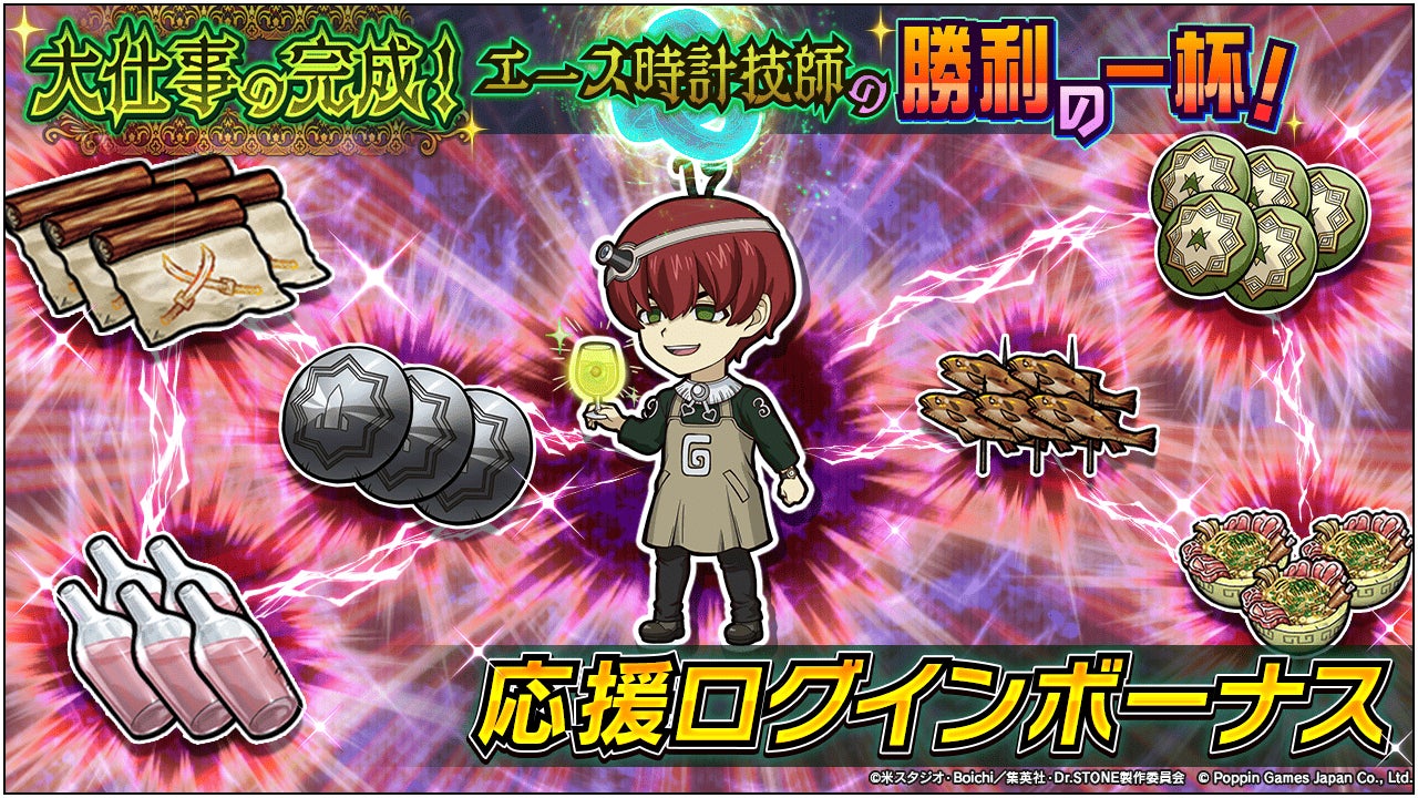 ポッピンゲームズジャパン株式会社は、AppStore/GooglePlayで配信中の『Dr.STONE バトルクラフト』にて新イベント&新ガチャを開催したことをお知らせいたします。