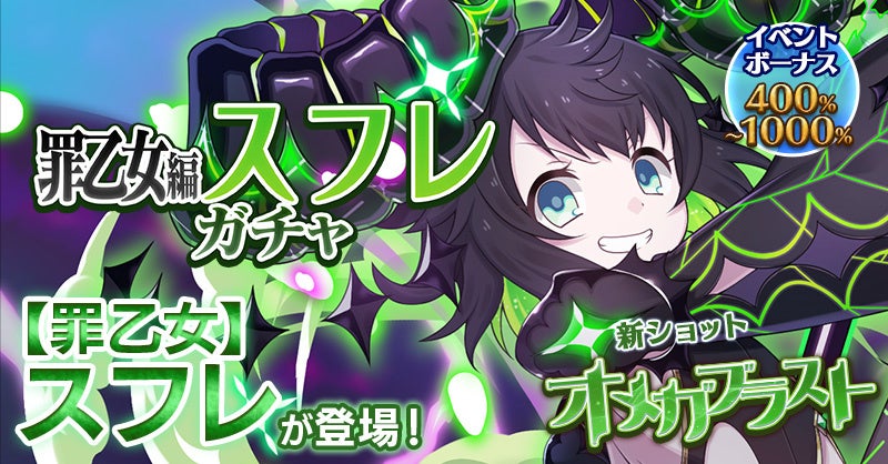 「罪乙女編スフレガチャ」では、新ショット「オメガブラスト」を持つ「【罪乙女】スフレ」が登場します。