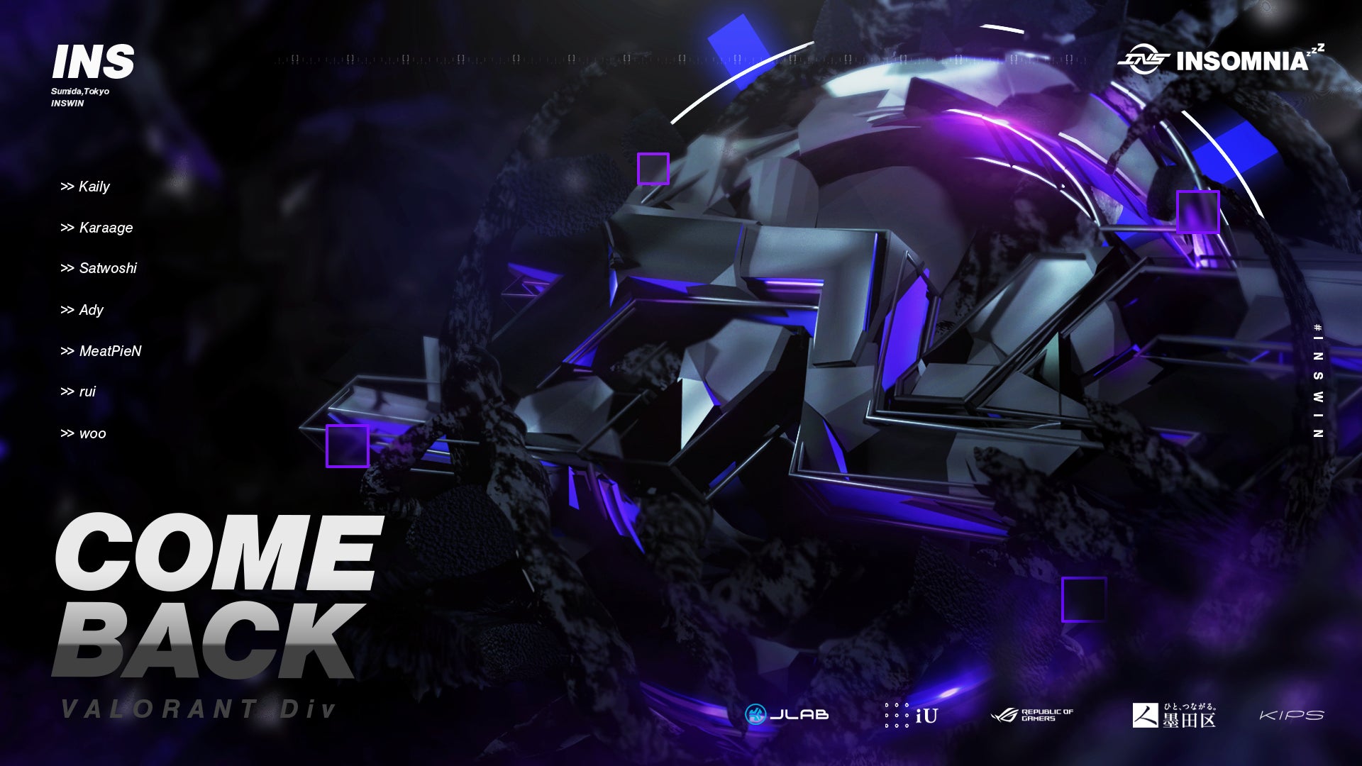 株式会社INS(本社:東京都墨田区、代表取締役:本橋壮太、以下「INSOMNIA」)が運営するeスポーツチーム「INSOMNIA」は、VALORANT部門を再始動し、