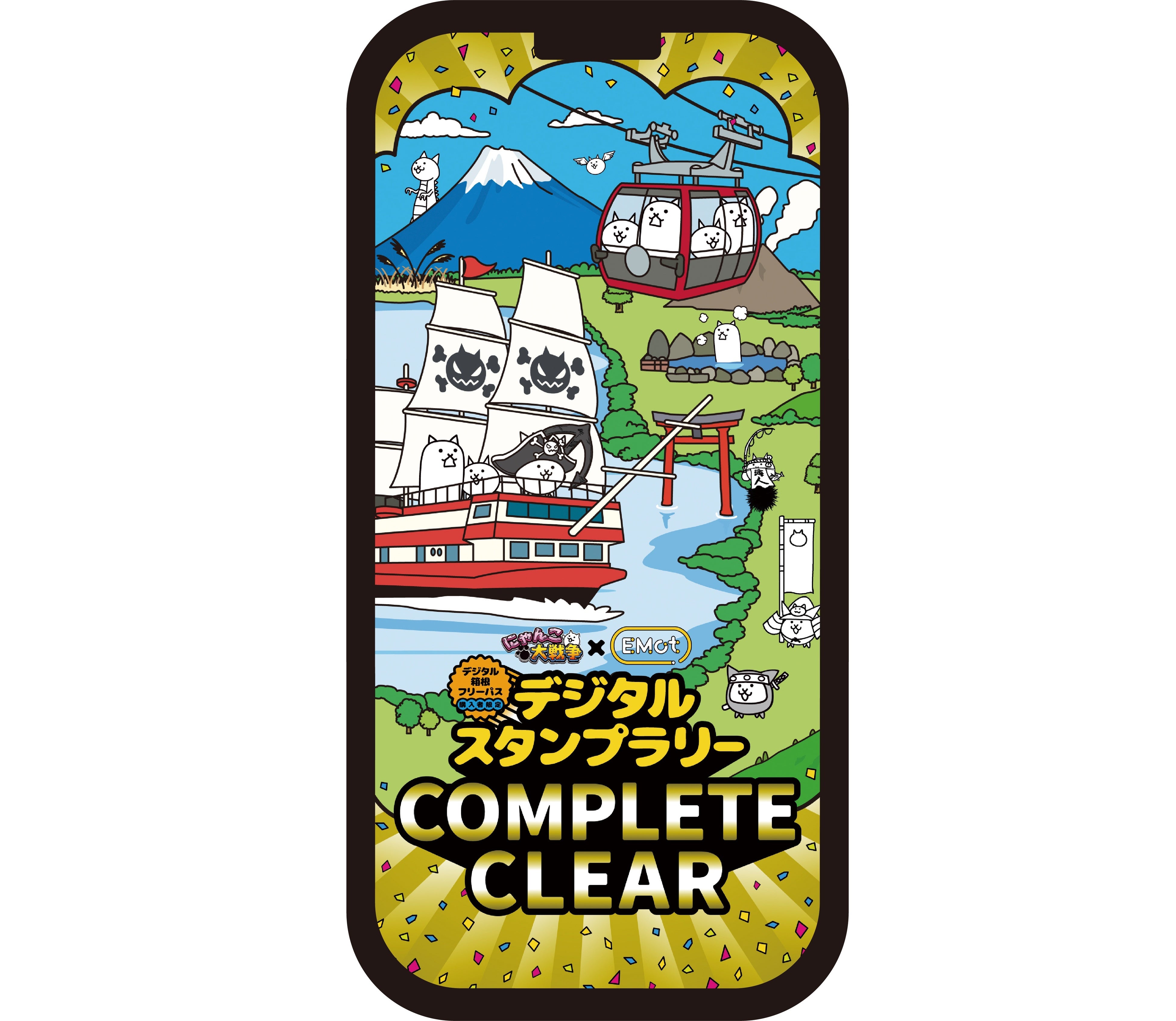本企画は、「にゃんこ、箱根を満喫中!」をコンセプトに、『にゃんこ大戦争』のキャラクターたちが箱根の観光スポットに登場する体験型コラボレーション企画です。EMotを通じて、紙のスタンプ台紙を使わず、観光中の移動や立ち寄り体験を妨げない、シームレスなスタンプラリー体験を提供します。