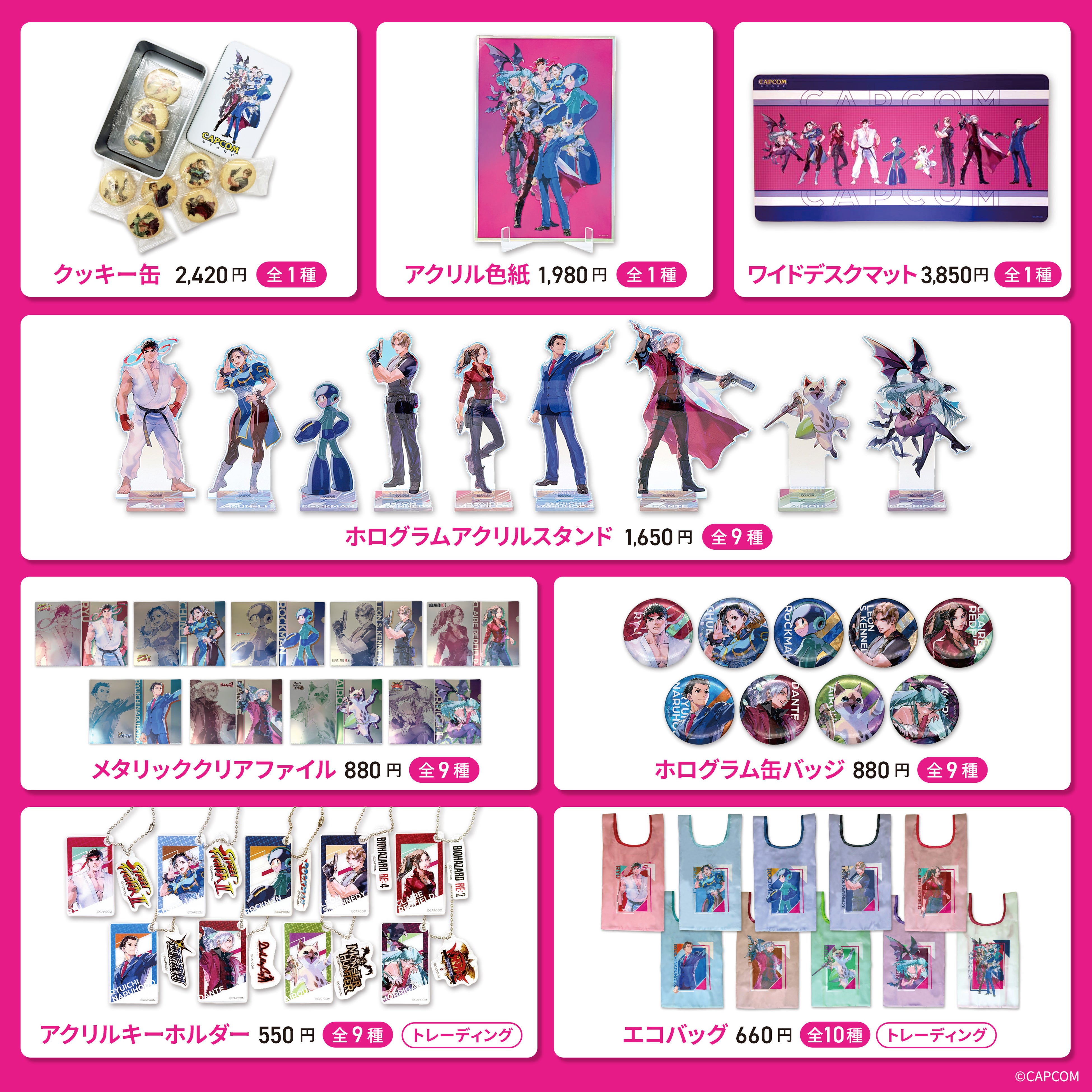 本商品は、カプコンの人気7タイトルより選出した9キャラクターを描き下ろした特別なイラストを使用した商品シリーズです。