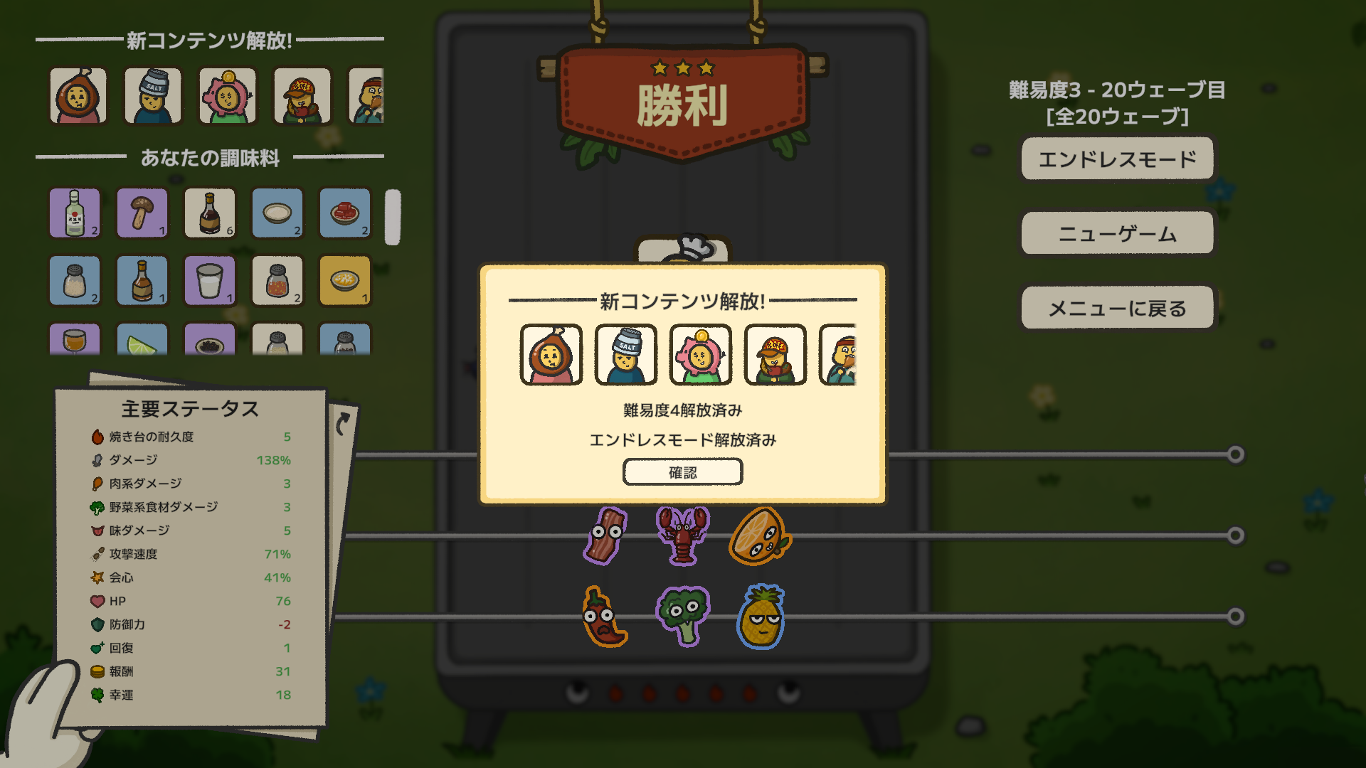 通常のゲームモードに加えて、エンドレスモードが新たに追加されました。20ウェーブ目をクリアすると解放され、より歯ごたえのある戦いに挑戦したいプレイヤーに向けたモードとなっています。