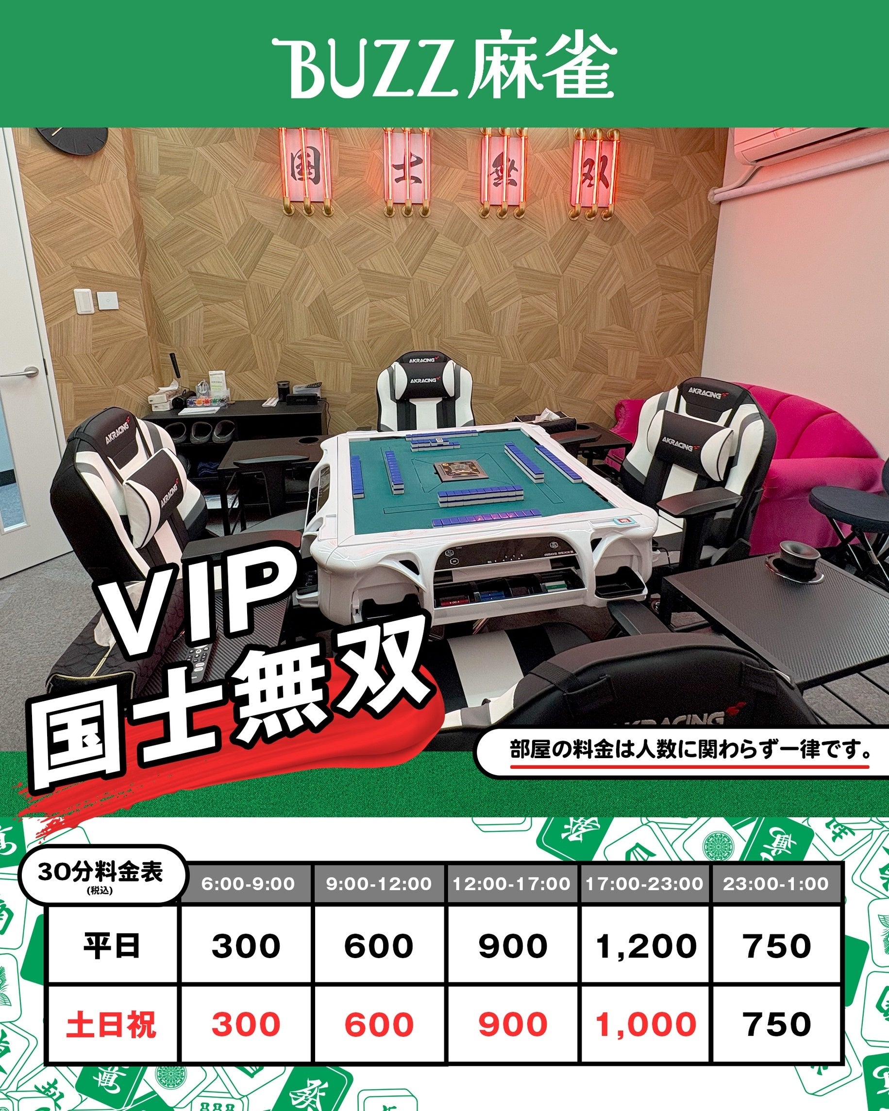 BUZZ麻雀は、赤坂駅から徒歩3分、溜池山王駅10番出口から徒歩5分、赤坂見附駅 11番(エレベーター)出口から徒歩6分。好立地に誕生する「完全個室×アモスレックスⅢ × 高品質空間」 の新しいセット雀荘。全国84店舗以上のSTUDIO BUZZが麻雀業界に参入。椿彩奈プロデュースで、防音・清潔感・デザインにこだわった完全個室。VIPルーム〈国士無双〉が象徴的なハイクラス空間 オープンキャンペーンも予定しておりますので、ぜひ皆様のご来店をお待ちしております。BUZZ麻雀】 環境で差がつく、完全個室セット雀荘BUZZ麻雀は、個室 × 防音 × 快適性に徹底的にこだわった、新しい時代のセット雀荘です。椅子、空間、音、清潔感。すべてに妥協せず、すべての麻雀好きのための環境を提供します。