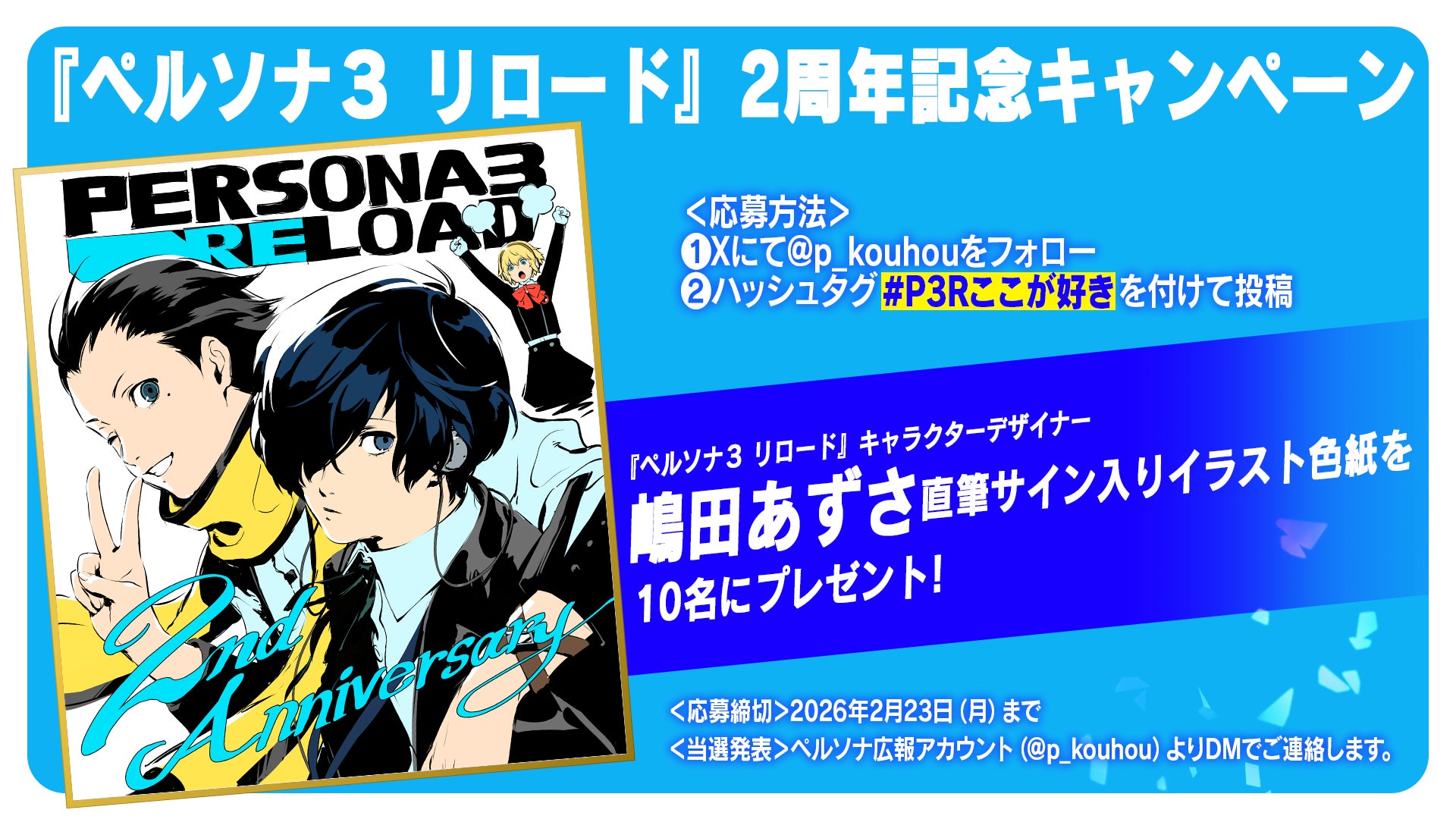 株式会社セガのグループ会社の株式会社アトラスより現在好評発売中のRPG『ペルソナ3 リロード』は、本日発売から2周年を迎えました。