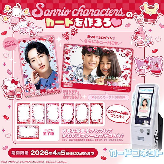 株式会社コナミアーケードゲームスは、アミューズメント施設向けカードプリントゲーム機『カードコネクト』にて、株式会社サンリオのキャラクターたちとのコラボデザインイベントを2月2日(月)から4月5日(日)まで開催することをお知らせします。