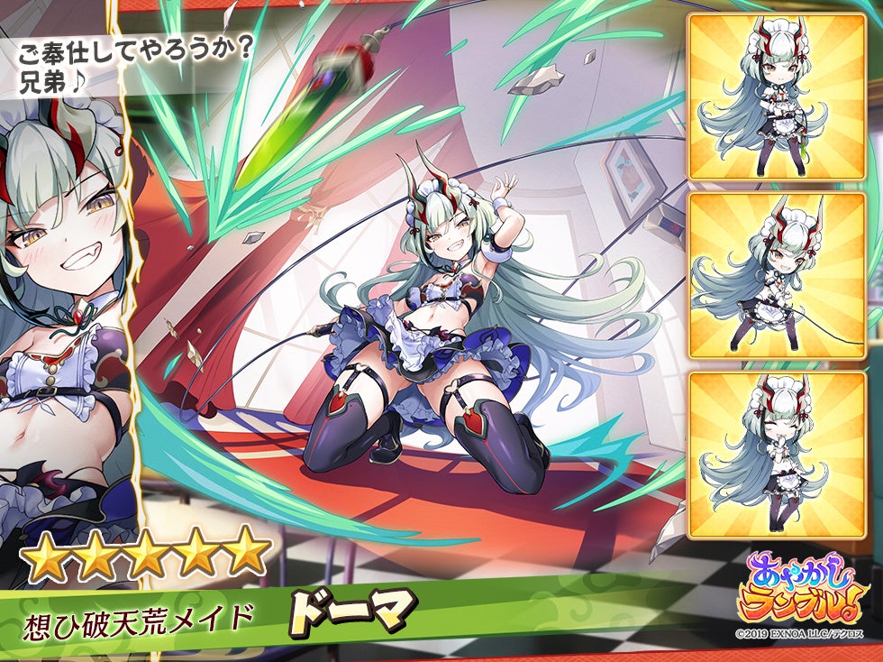 合同会社EXNOA(本社:東京都港区、CEO:東條 寛、URL:https://games.dmm.com/)が運営するDMM GAMESにおいて、あやかし美少女たちと冒険する、迎撃型爽快スキルバトルRPG『あやかしランブル!』(https://ayarabu.jp/)は、2月2日に、新たに期間限定「★5 ドーマ」「★5 荼枳尼天」を追加したことを発表しました。