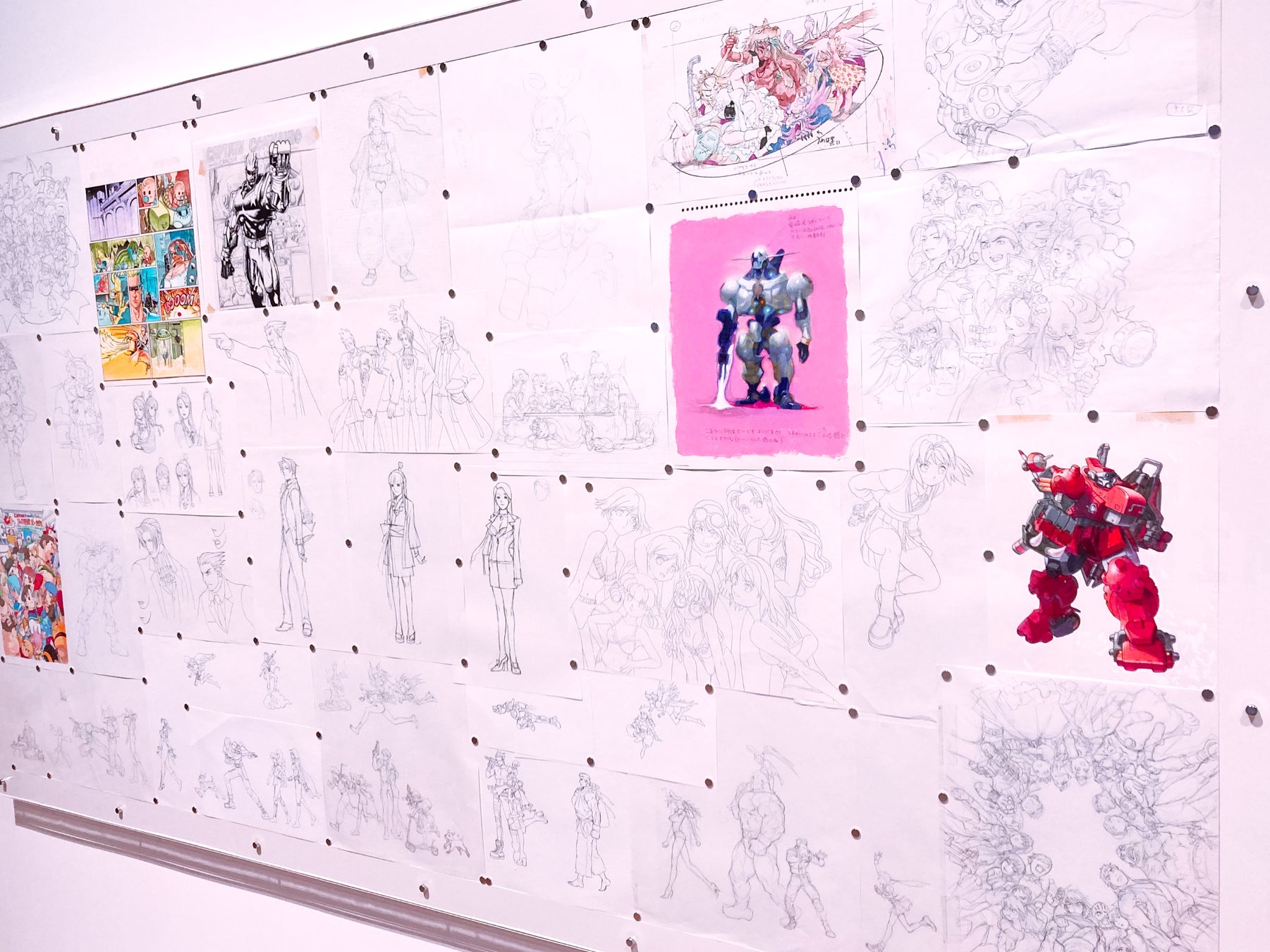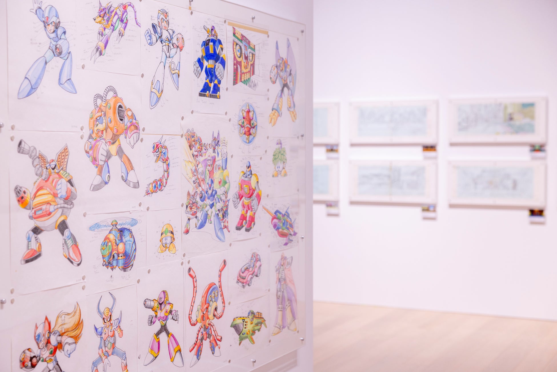 東京会場で追加されたスケッチ展示をはじめ、世に出る機会の少ない手描きの原画・開発資料類が