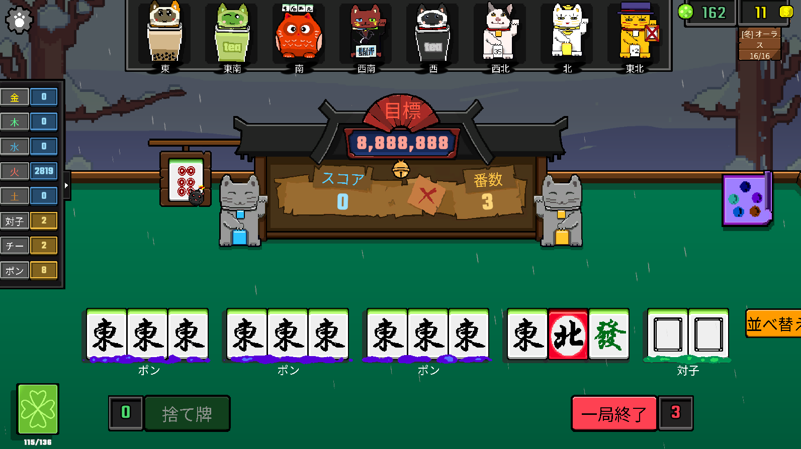 『風水ニャン牌』では、プレイヤーは「気」の流れを操る風水ニャン術師として牌局に挑みます。