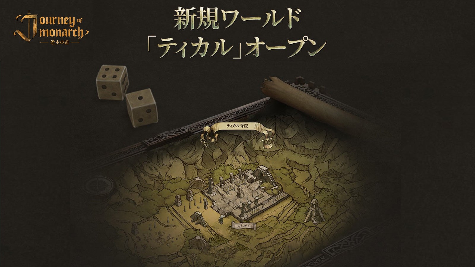 新たなワールド「ティカル」が本日よりオープンしました。本ワールドは通常のワールドと異なるコンテンツ進行スピードを備えた「リバース ワールド」として構成されています。また、決闘場などのマッチングも「ティカル」ワールド間のみで行われるため、新たに「君主の道」を始める方におすすめのワールドです。さらに、「ティカル」のオープンを記念し、限定イベント「ティカル ブースト ルーレット」も開催中なので、ぜひご参加ください。