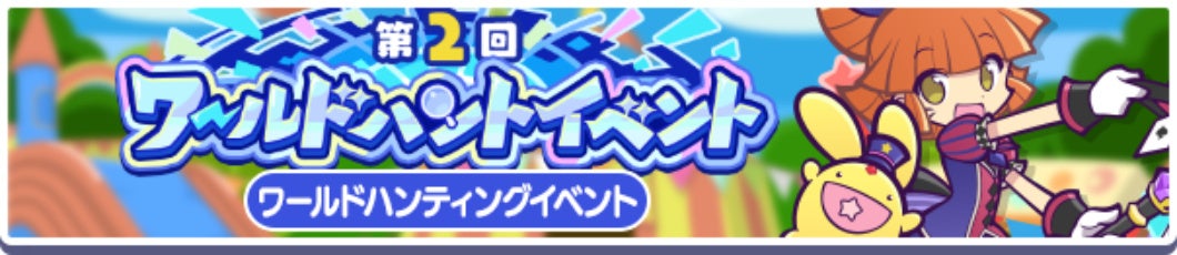 内容:イベント限定カード「[★6] サーカスのどうぶつ使いチコ」や最大40個の「魔導石」、「ぷよの日記念フルパワーガチャクーポン」などの豪華な報酬が獲得できる“第2回ワールドハントイベント”を開催します。本イベントは、対象クエストをクリアすると獲得できるアイテム「ワールドコイン」を集めるハンティングイベントです。