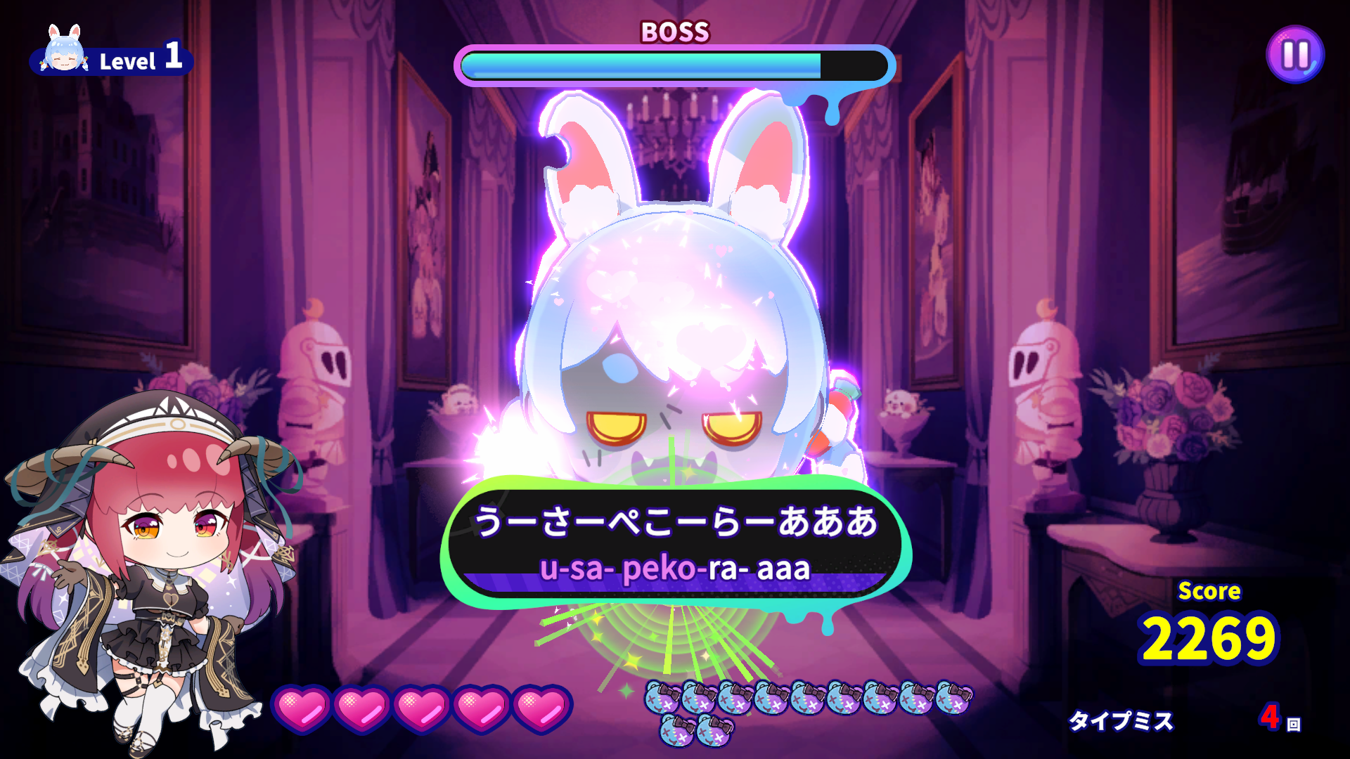 本作は、ホロライブ所属タレントたちの「ボイス」をタイピングする、新感覚のタイピングアクションゲームです。