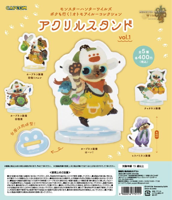 「モンスターハンターフェスタ’26」の会場内には、いろんな装備やポーズが可愛い新商品の「オトモアイルーアクリルスタンド」をはじめ、様々な『モンスターハンターワイルズ』のカプセルトイ商品をご用意いたします。