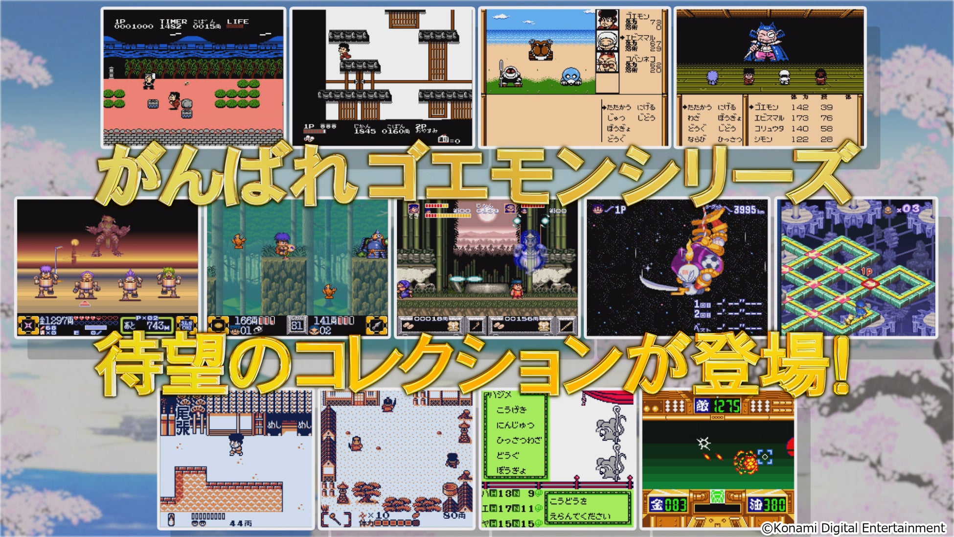 本作は、1986年に発売した1作目『がんばれゴエモン!からくり道中』をはじめ、大人気作『がんばれゴエモン ゆき姫救出絵巻』『がんばれゴエモン2 奇天烈将軍マッギネス』や、初移植4作品を含む、ファミリーコンピュータ・スーパーファミコン・ゲームボーイ作品13タイトルを収録しています。巻き戻し、クイックセーブ・ロードはもちろん、ミュージックモード、当時の取扱説明書を閲覧できるモードなど様々な機能を搭載し、懐かしの作品のプレーを丁寧にサポートします。