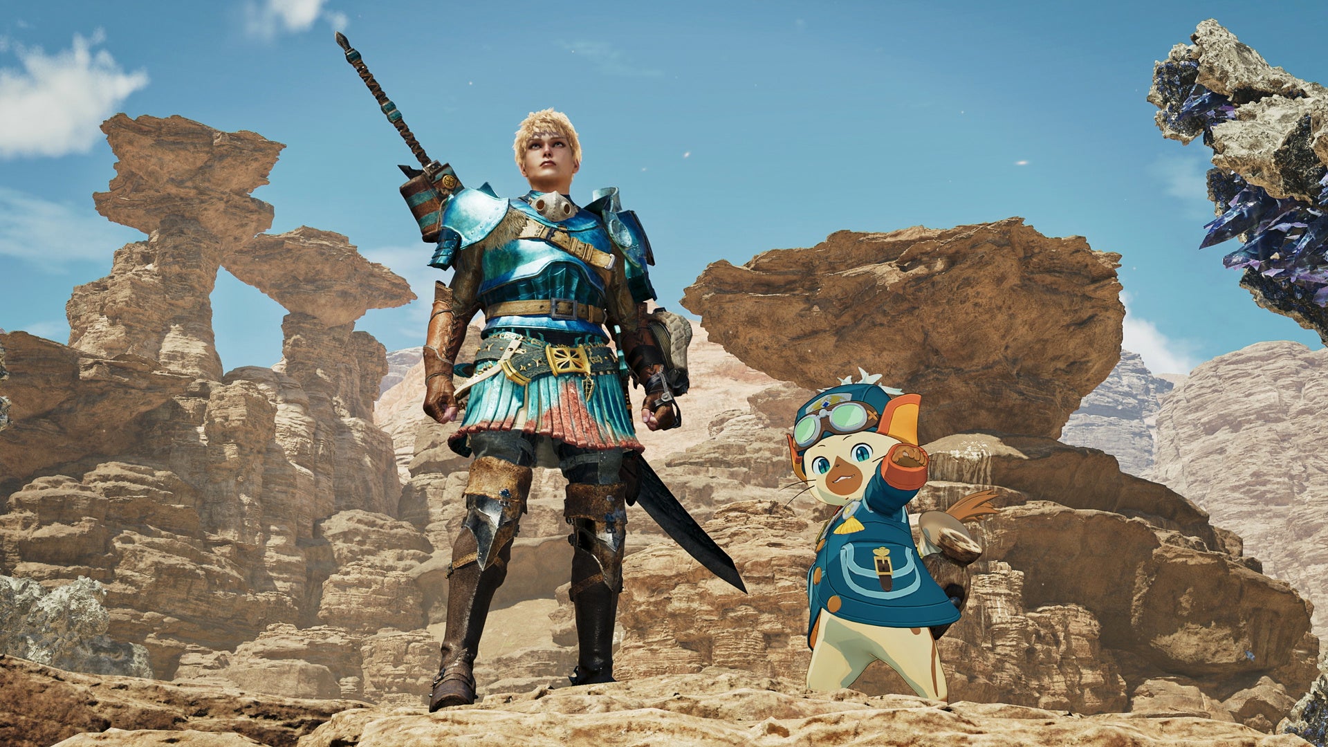 『モンスターハンターストーリーズ3 ~運命の双竜~』の発売を記念したコラボで、ロイヤルアイルー「ルディ」のなりきりオトモアイルー装備や、チャームなどを入手しよう!