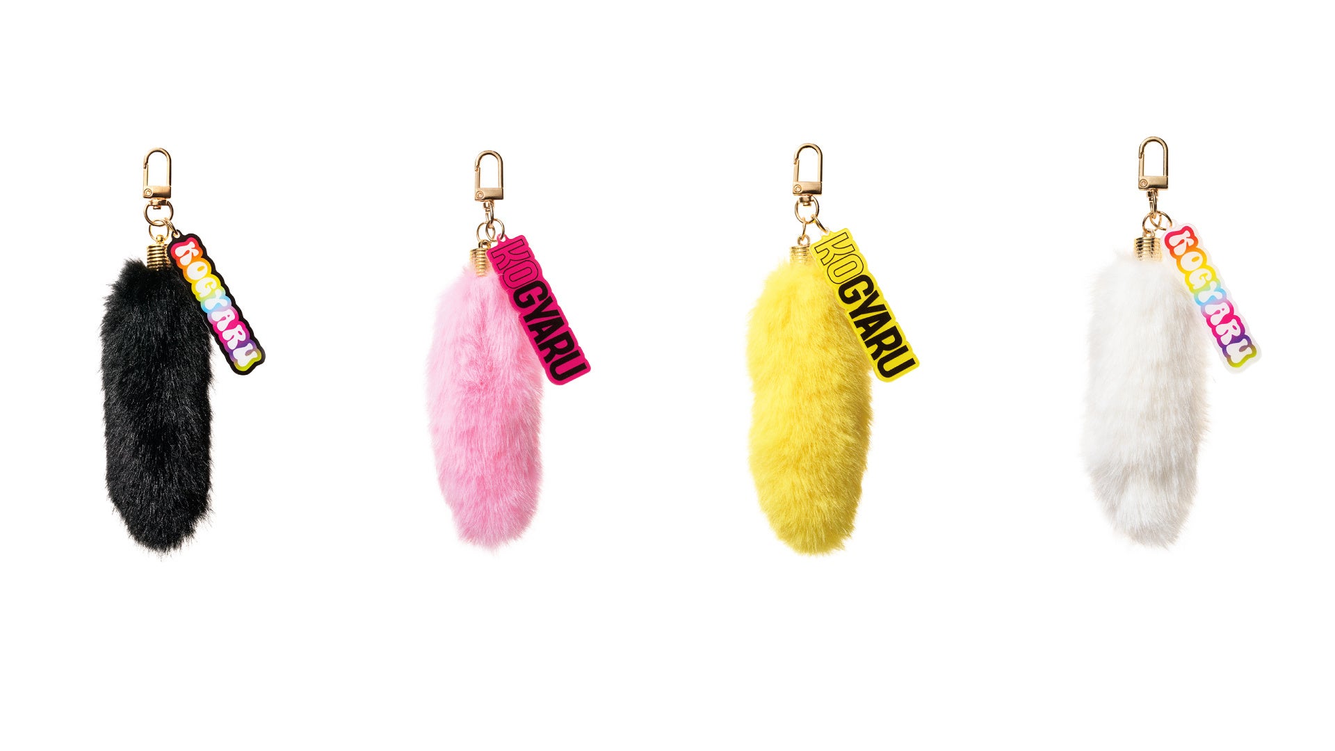 POPなKOGYARUロゴアクリルチャームがついた猫のしっぽチャーム。