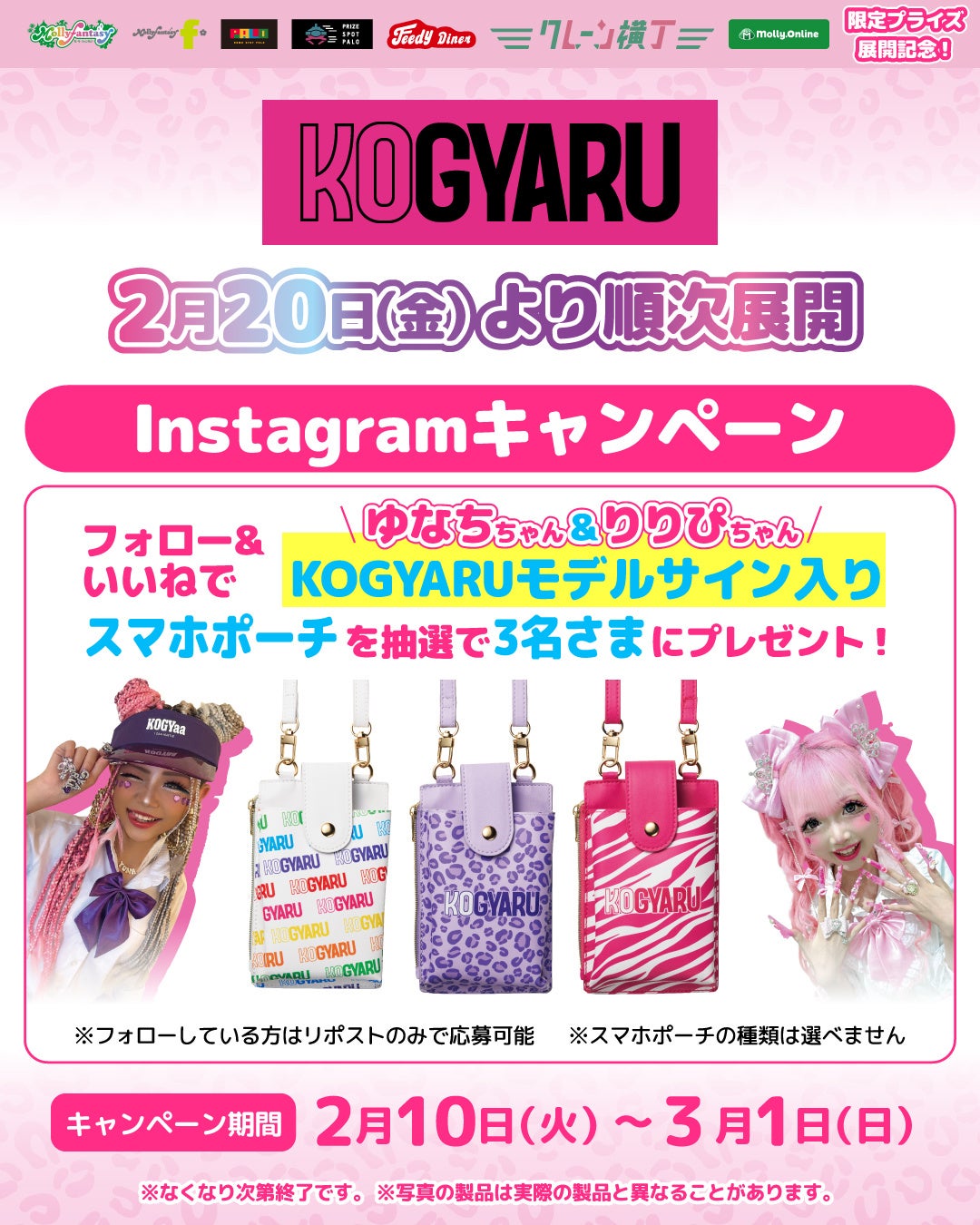 限定プライズの展開を記念し、モーリーファンタジー公式X・Instagramでは、「サイン入りKOGYARU スマホポーチ」が抽選で各3名さま、計6名さまに当たるSNSキャンペーンを開催いたします。