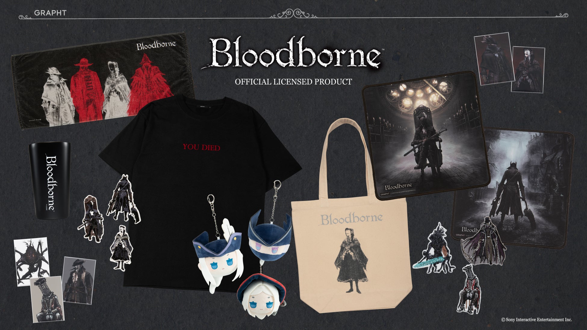 「PlayStation(TM)」「ASTRO BOT」「どこでもいっしょ」「サルゲッチュ」「Bloodborne」「Ghost of Tsushima」「Ghost of Yōtei」「PATAPON」のアパレルや雑貨、「アークザラッドⅡ」の刺繍ステッカーシリーズなど、ライフスタイルをゲームの世界観で彩るアイテムを多数取り揃えます。