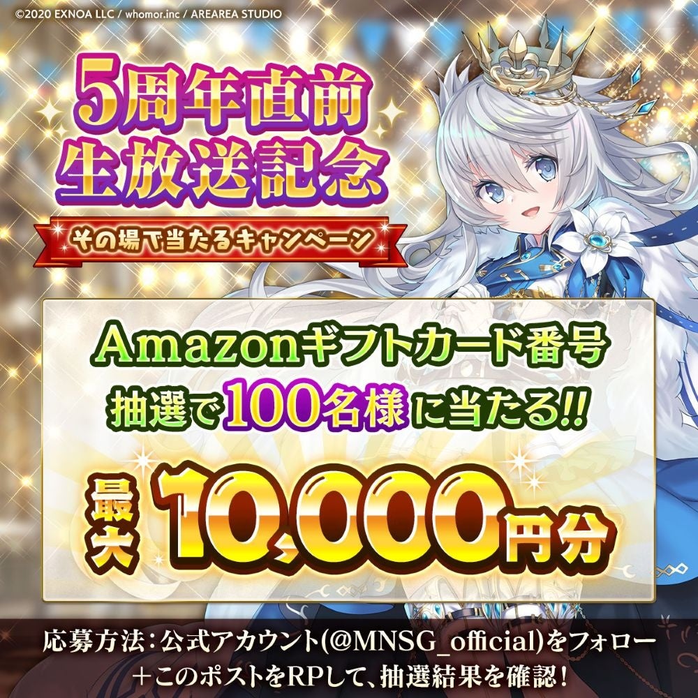 「5周年記念生放送」を記念し、その場で当たるXキャンペーンを開催中です。