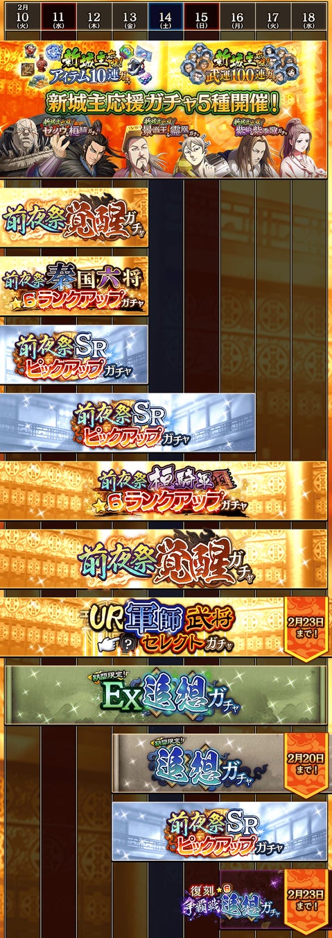 SR★4武将排出確率が通常時と比べて6倍にUPします!