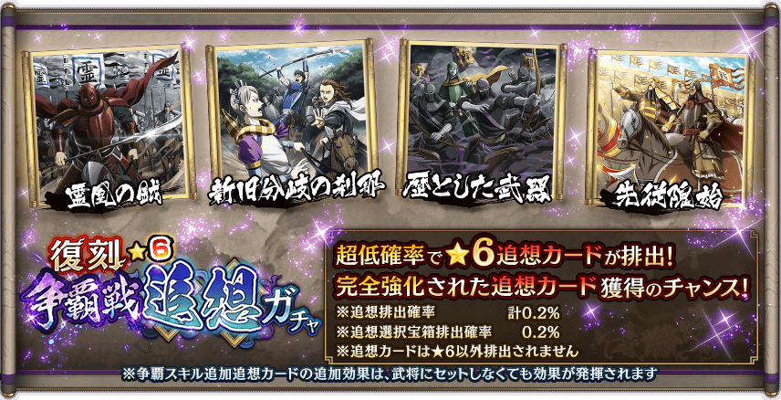 獲得することで対象武将に争覇スキルが解放される『争覇スキル追加追想カード』が排出されます!