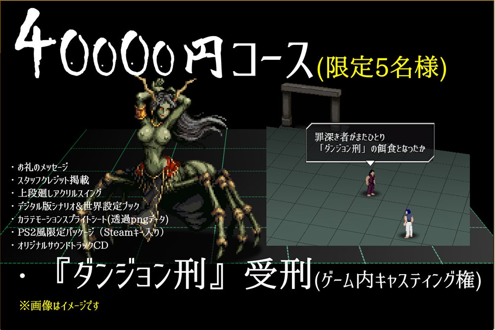 5名様限定のコースでは、支援者様に「ダンジョン刑」の受刑者となっていただきます。