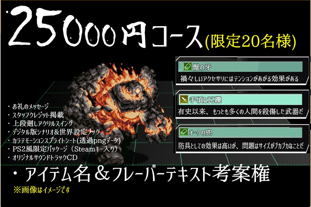 20名様限定の25000円コースでは、アイテムとフレーバーテキストの命名権も提供しています。