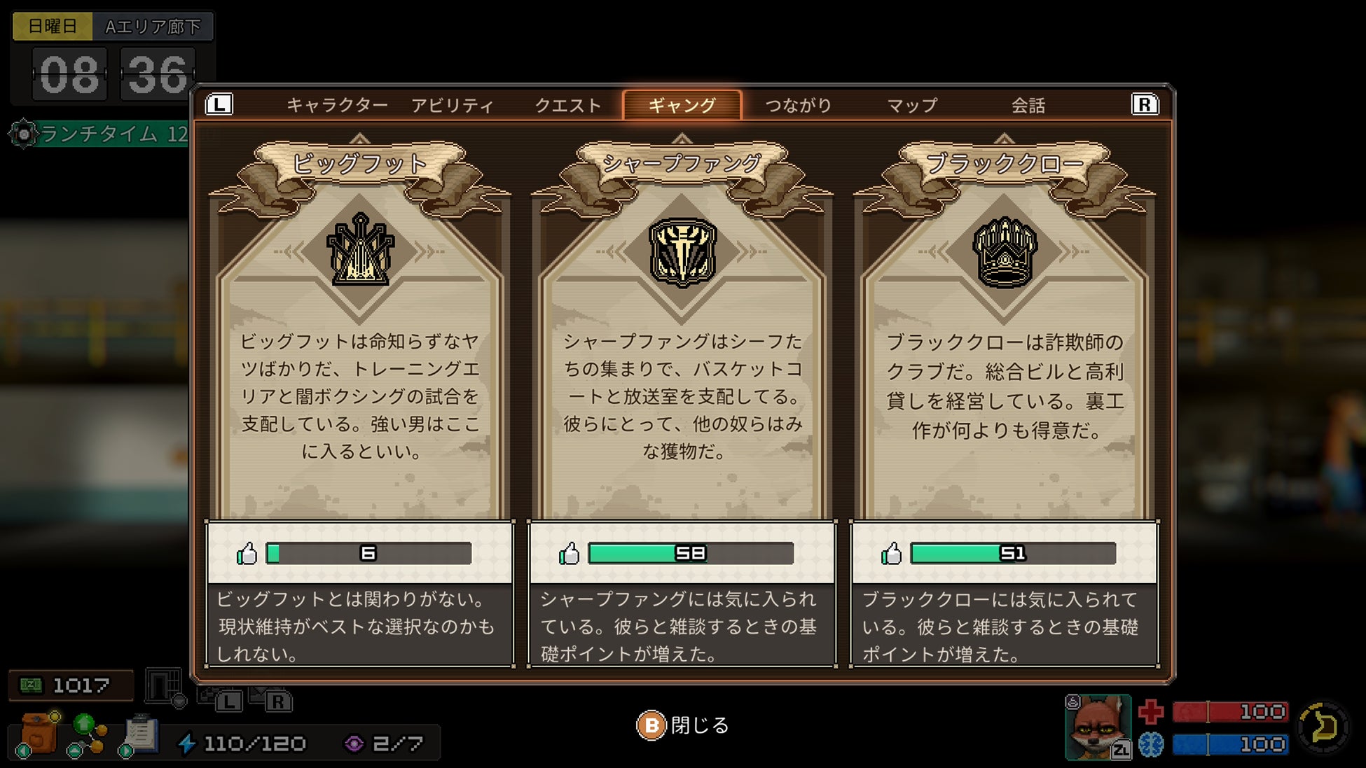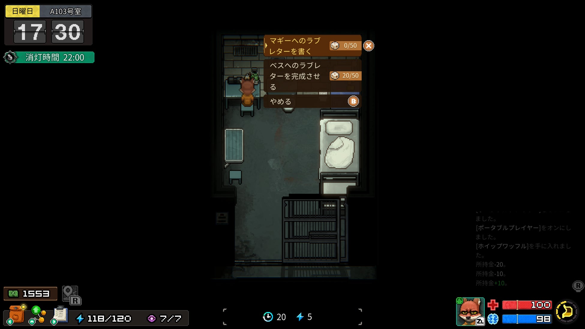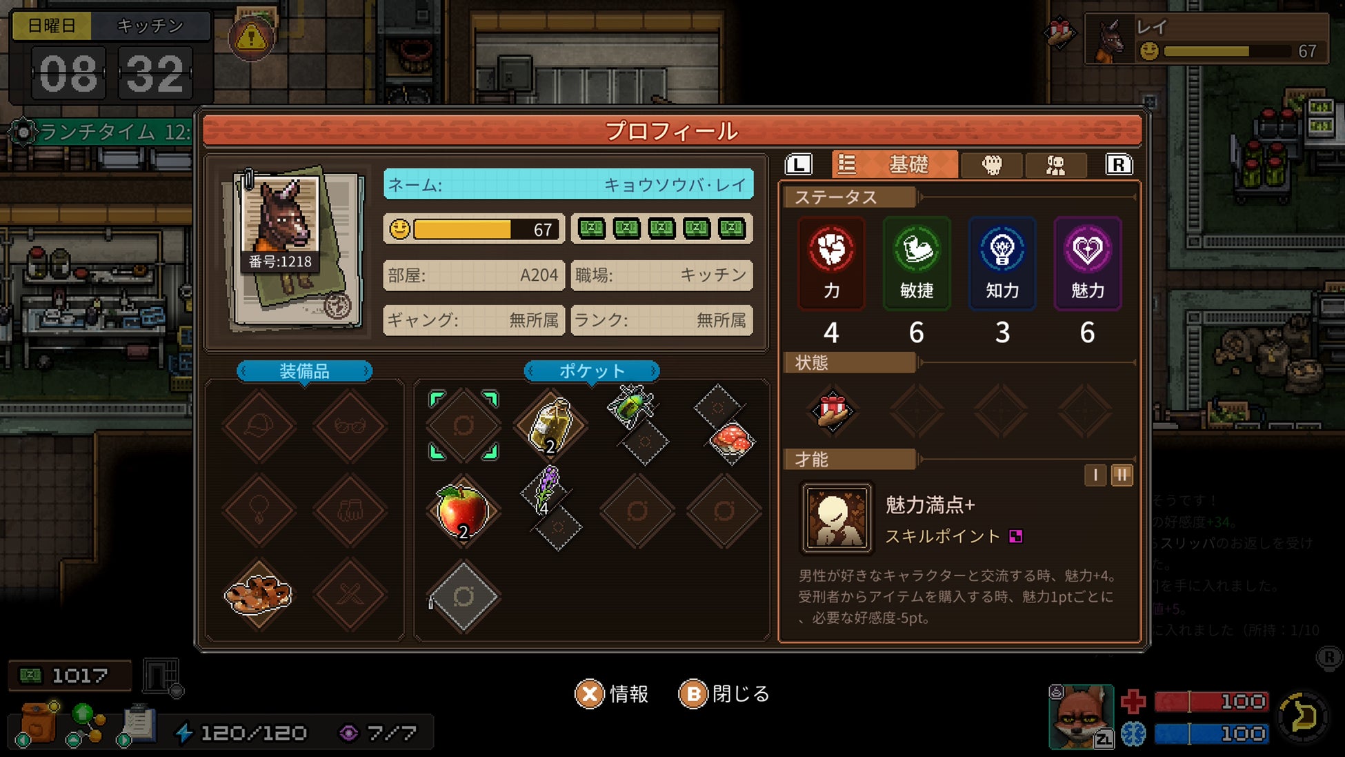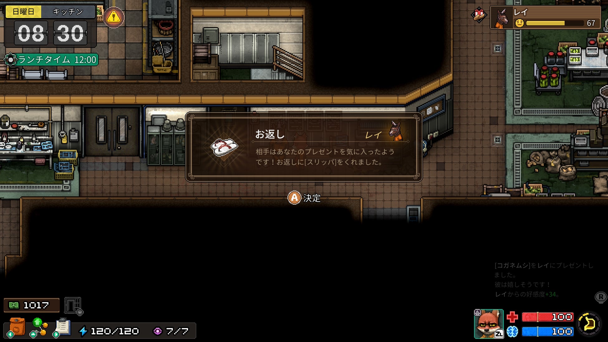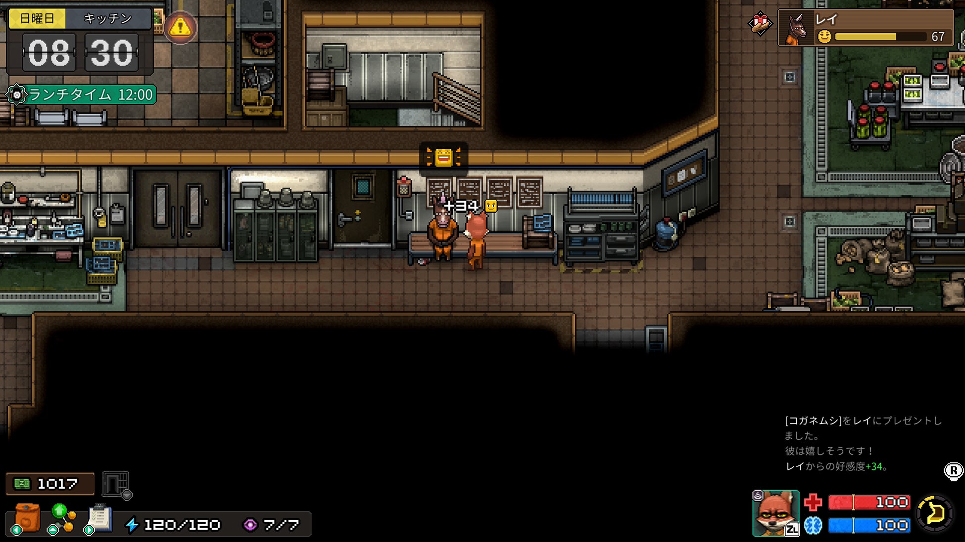 囚人たちとの間には、それぞれ「好感度」があり、会話やアイテムをプレゼントすることで上げることができる。