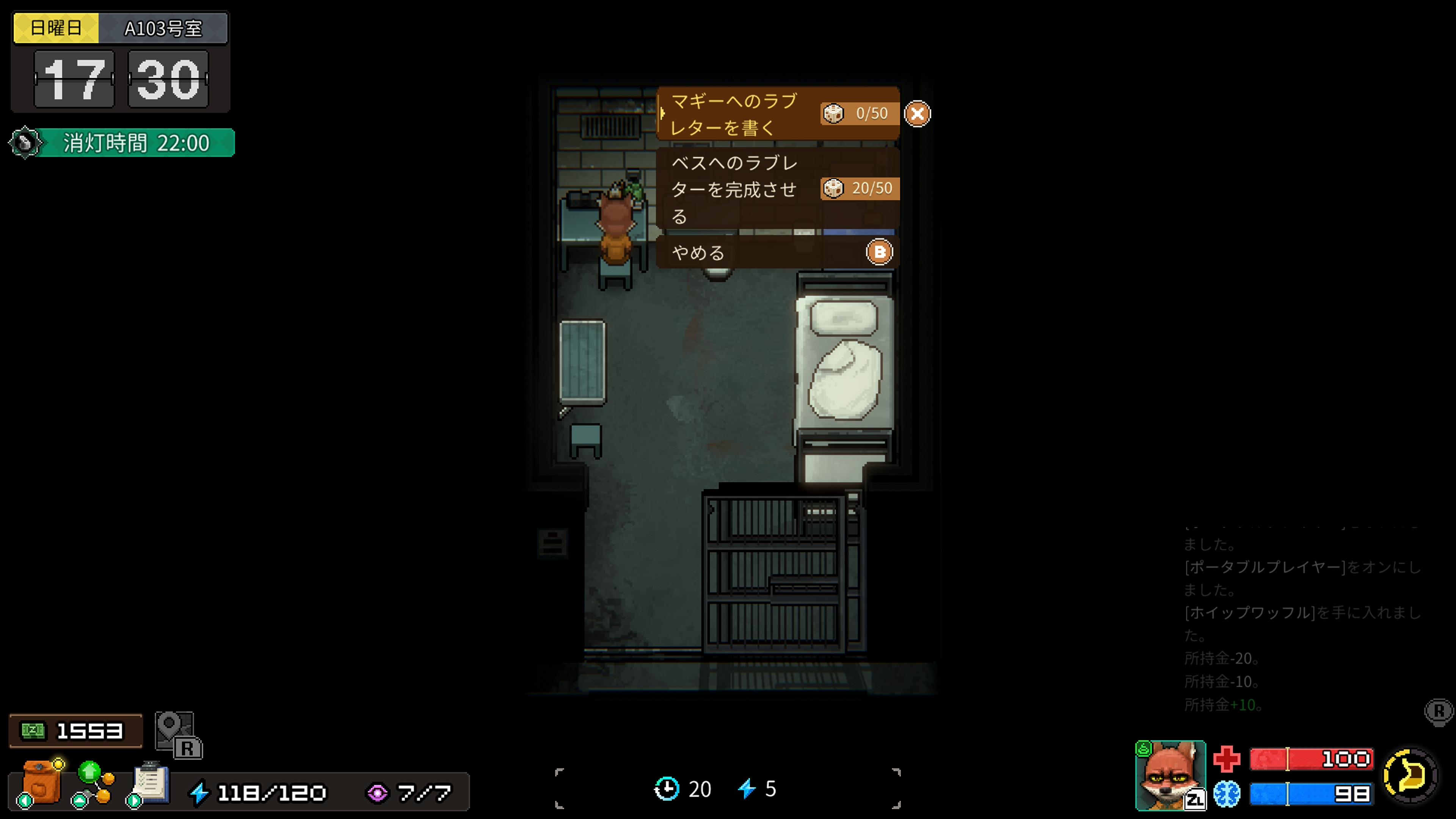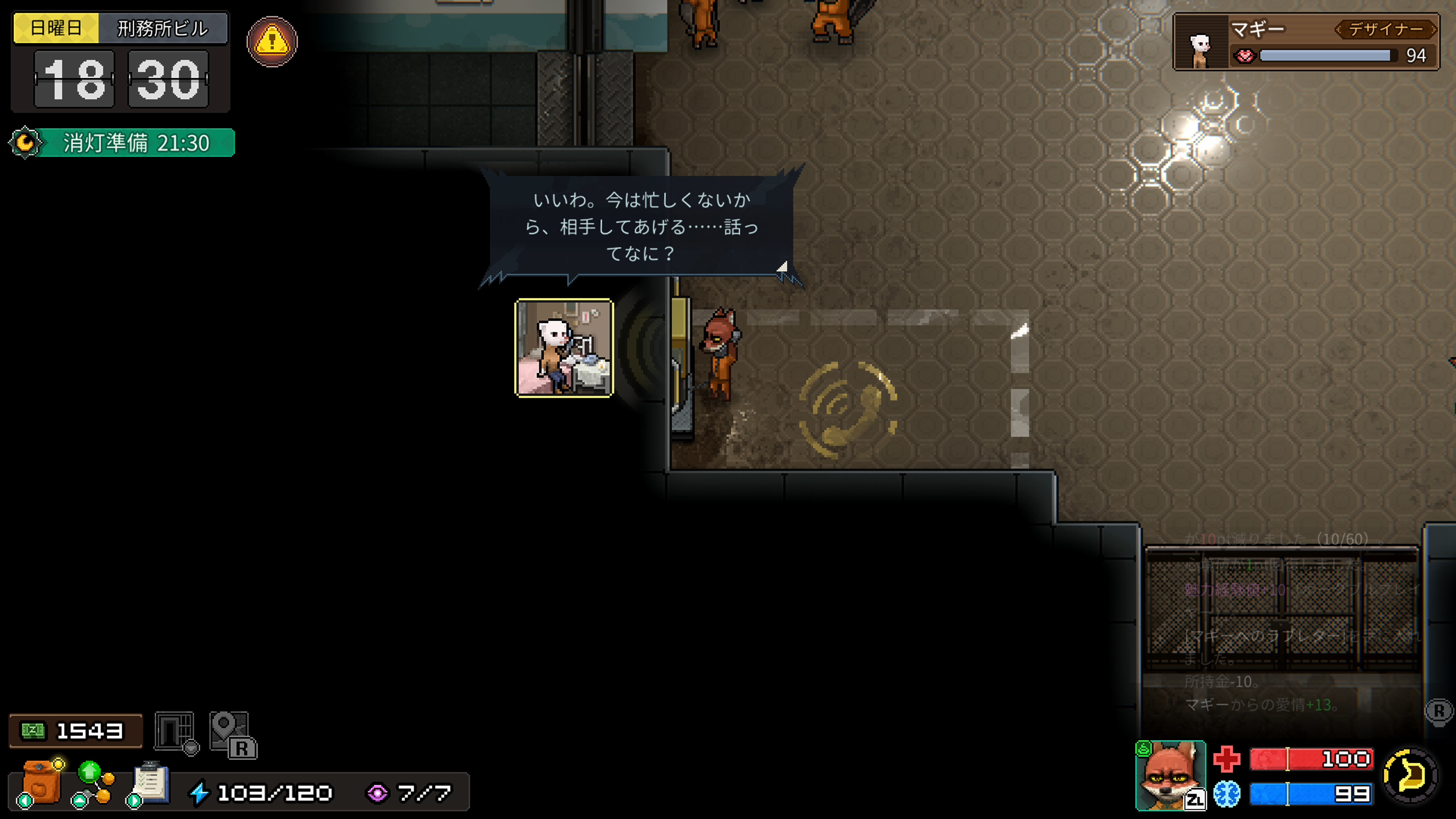 囚人たちとの間には、それぞれ「好感度」があり、会話やアイテムをプレゼントすることで上げることができる。