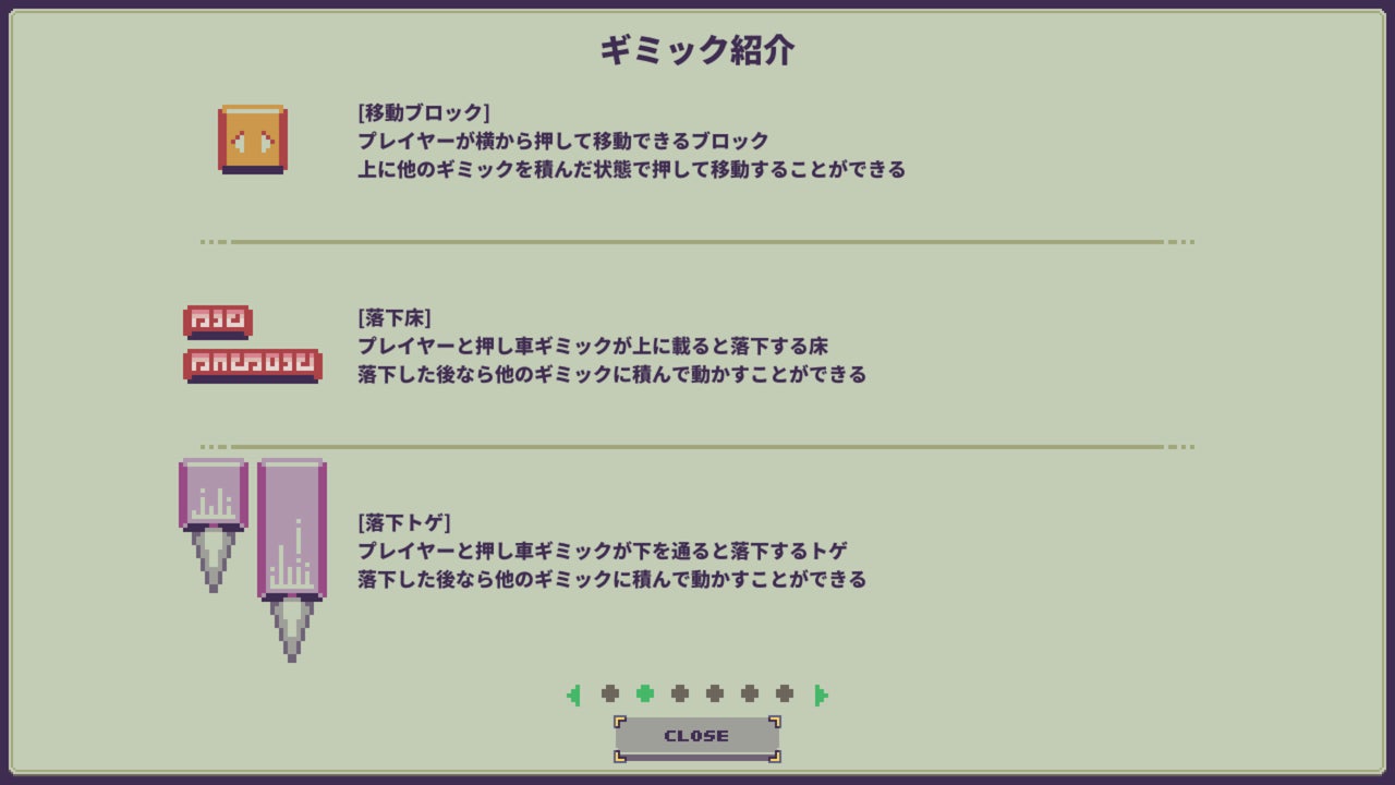 パズルがメインのステージだけでなく、時にはギリギリでジャンプするなどアクション力が必要なステージも。様々なギミックが仕掛けられたステージの数々があなたを待っています。