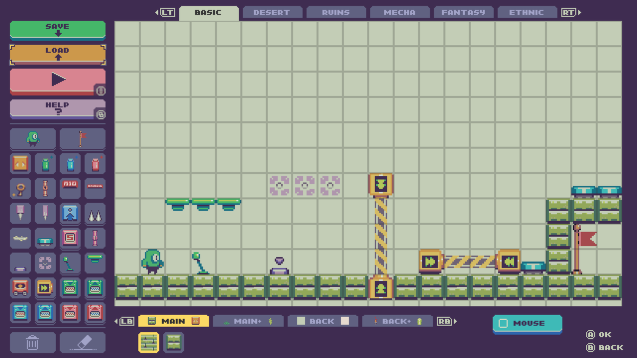 「エディットモード」では、ゲーム内に存在する全てのブロックやギミックを駆使し、オリジナルのステージが作成可能です。