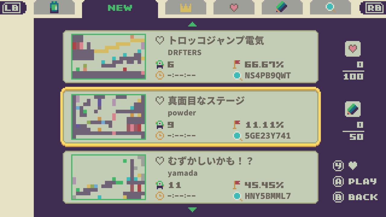 誰も思いつかないようなギミックの新たな活用などが、ステージ作成から生まれることを楽しみにしています。