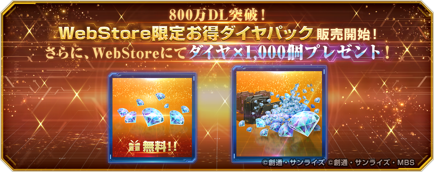 また、皆様のおかげで全世界800万ダウンロードを達成いたしました。これを記念して「Bandai Namco Entertainment Web Store」にてダイヤにてダイヤ1,000個プレゼントなどのキャンペーンを実施中です。