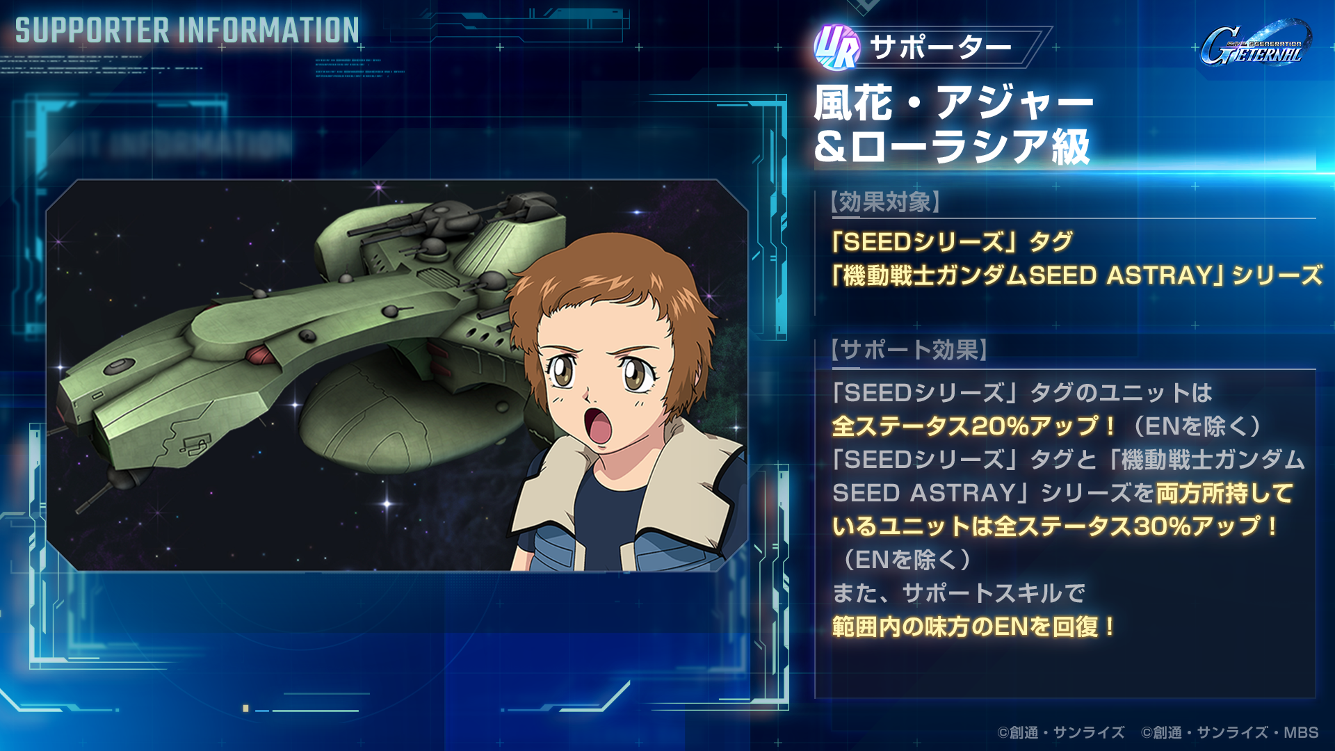 期間限定ユニットとして、UR「ガンダムアストレイ レッドフレーム改(EX)」/UR「ロウ・ギュール」が登場!また、UR「ガンダムアストレイ ゴールドフレーム天ミナ(EX)」/UR「ロンド・ミナ・サハク」や、URサポーター「風花・アジャー&ローラシア級」などが登場します。