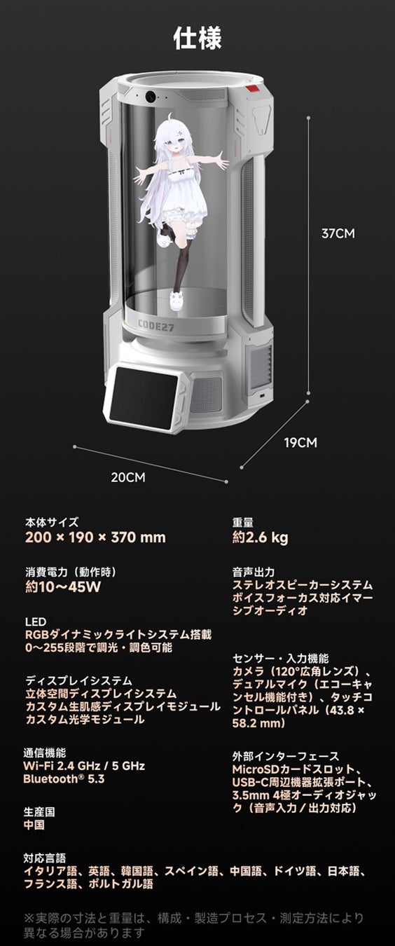 CODE27は、ハードウェアとAI技術を融合することで、キャラクターと暮らすという新しいライフスタイルを、現実の空間に届けます。