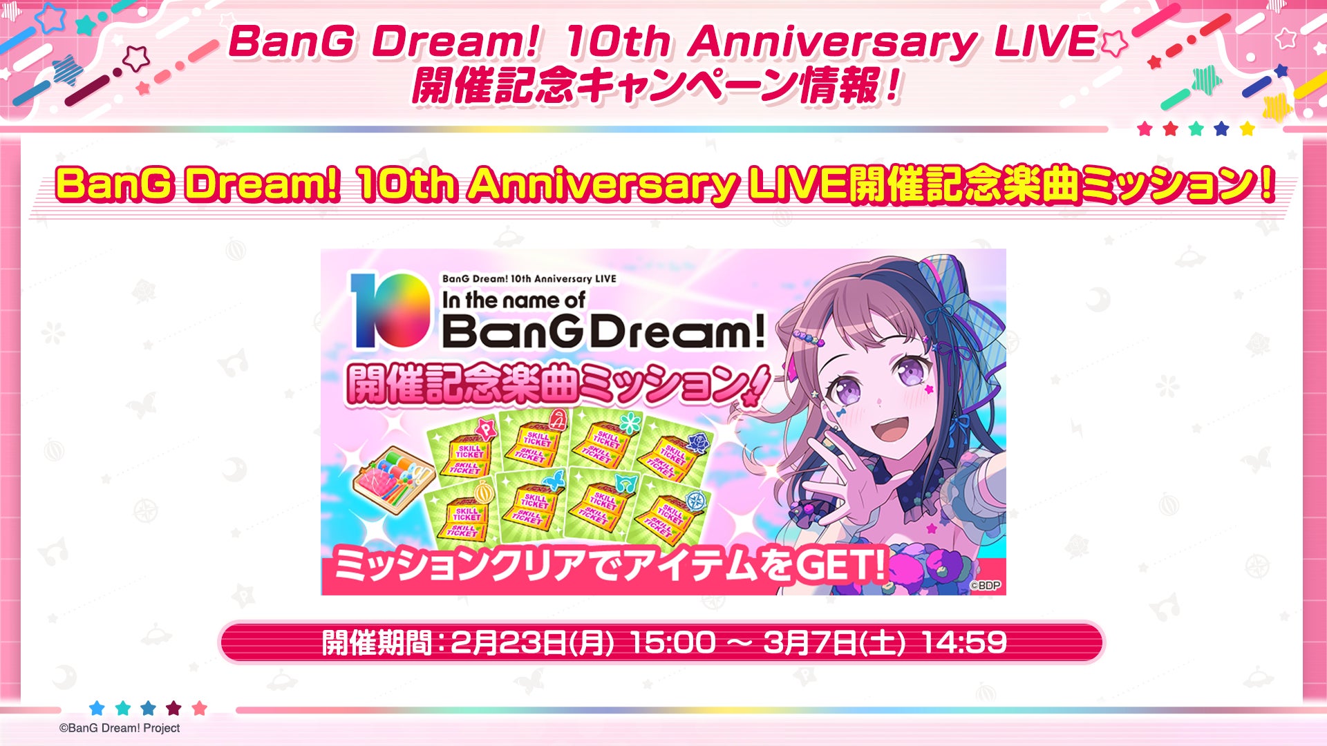 2. 「BanG Dream! 10th Anniversary LIVE開催記念楽曲ミッション!」を開催!