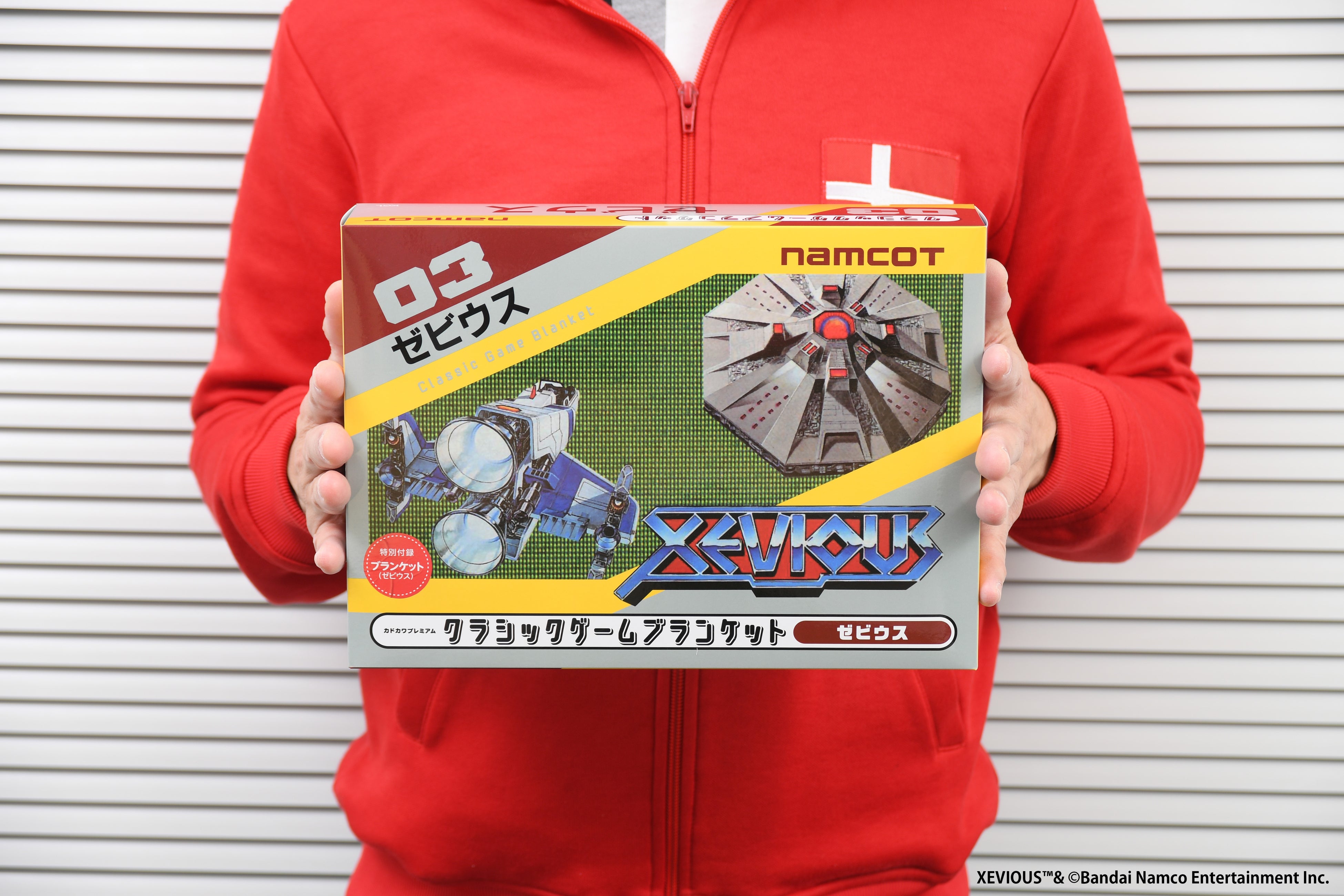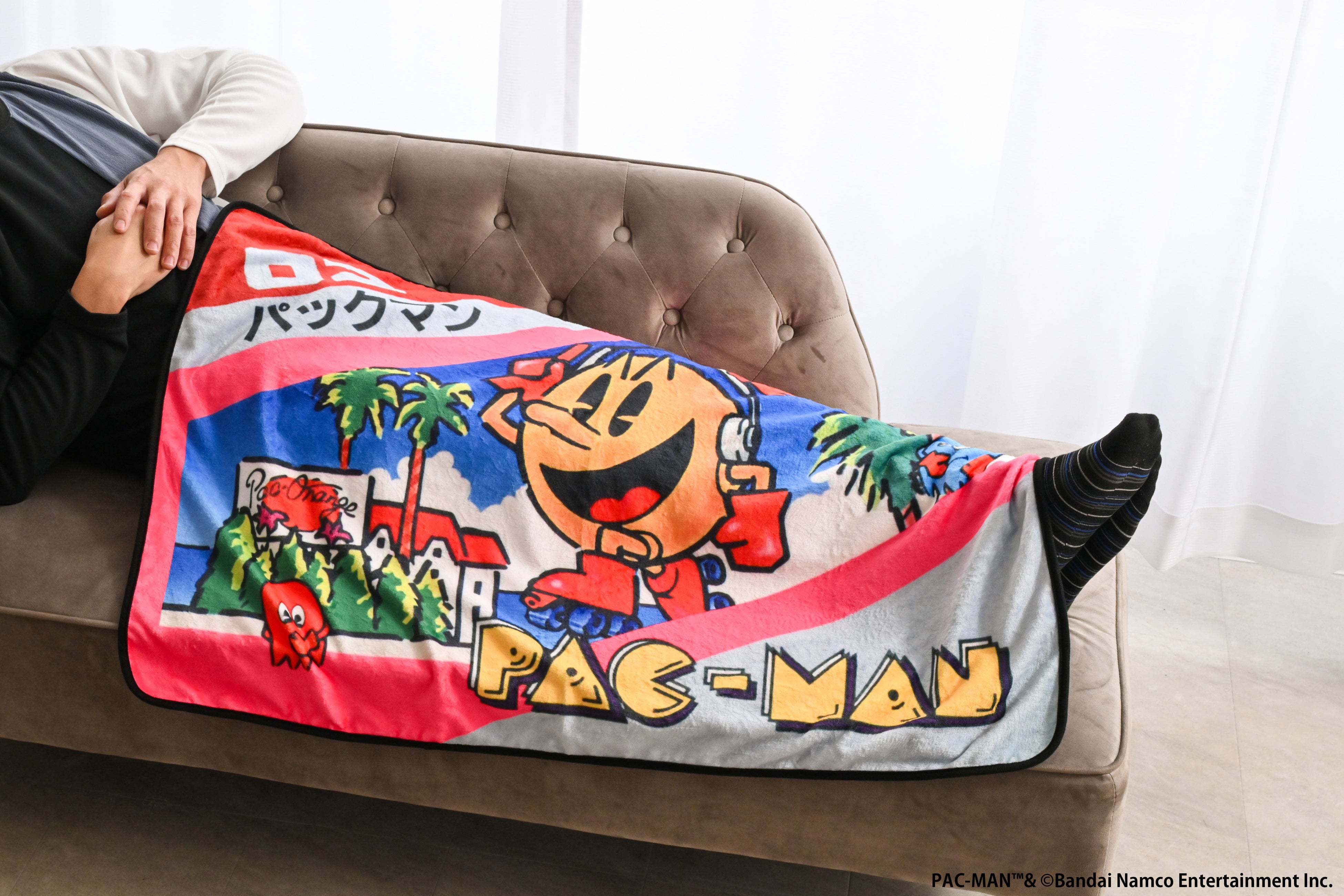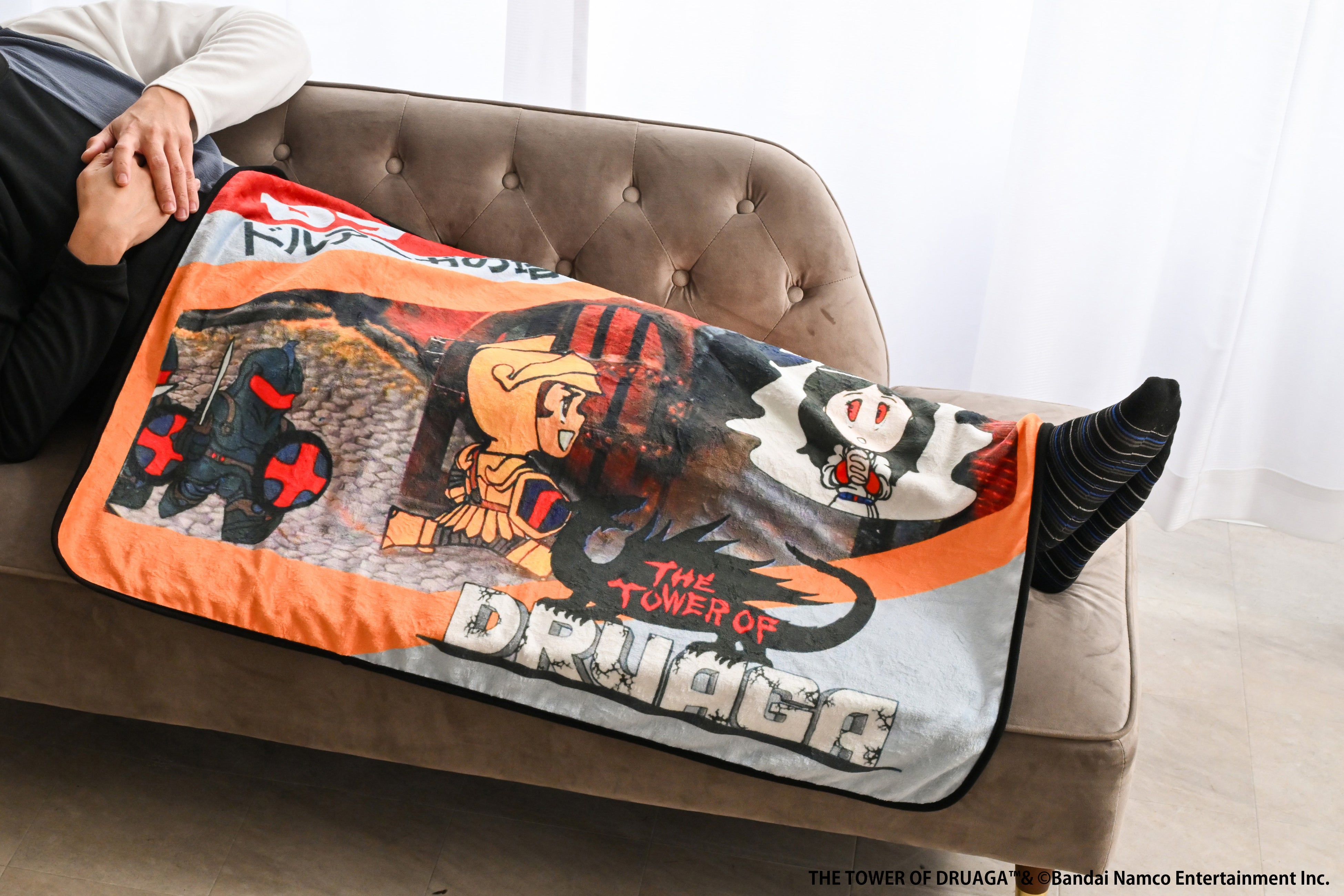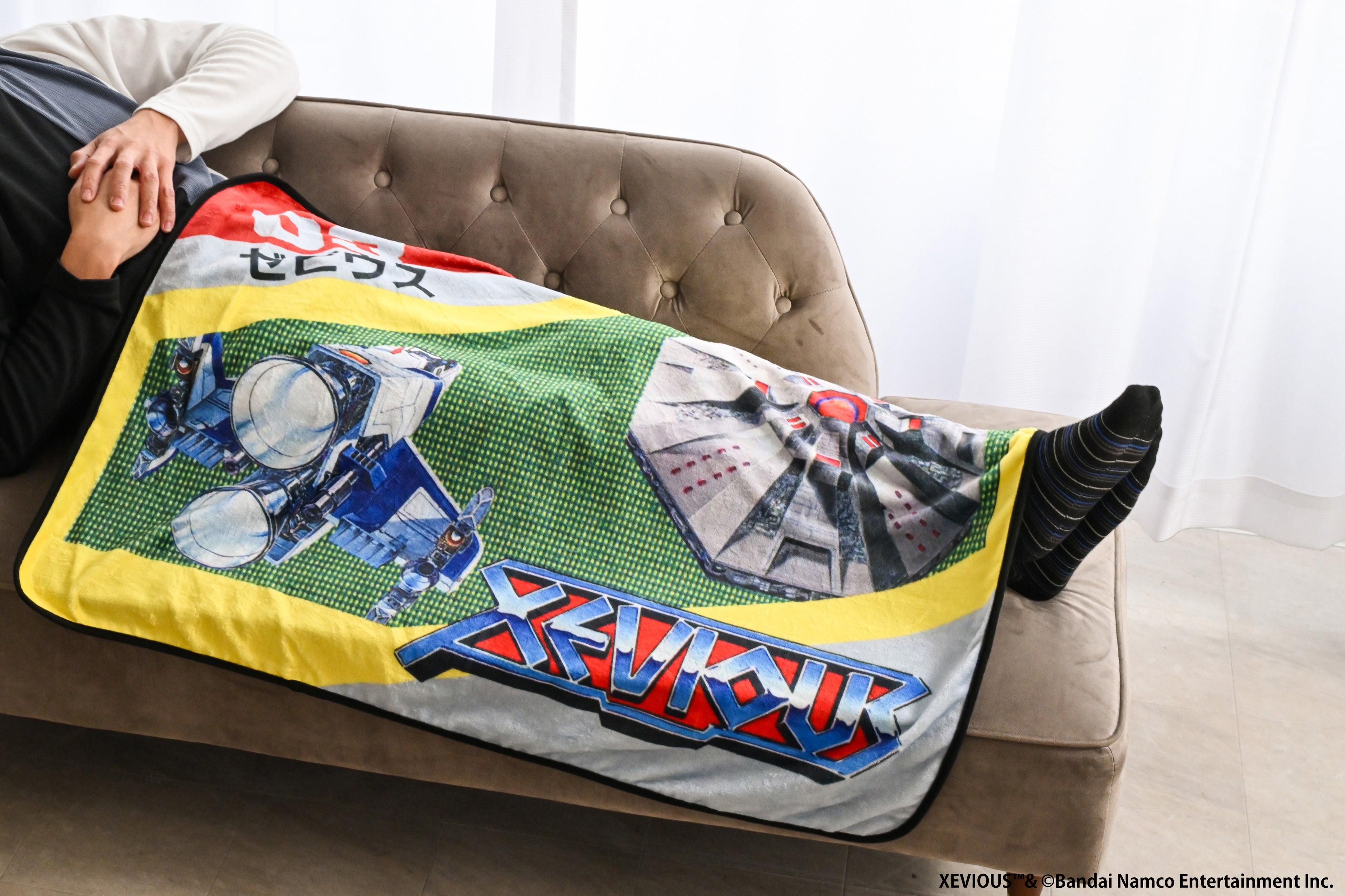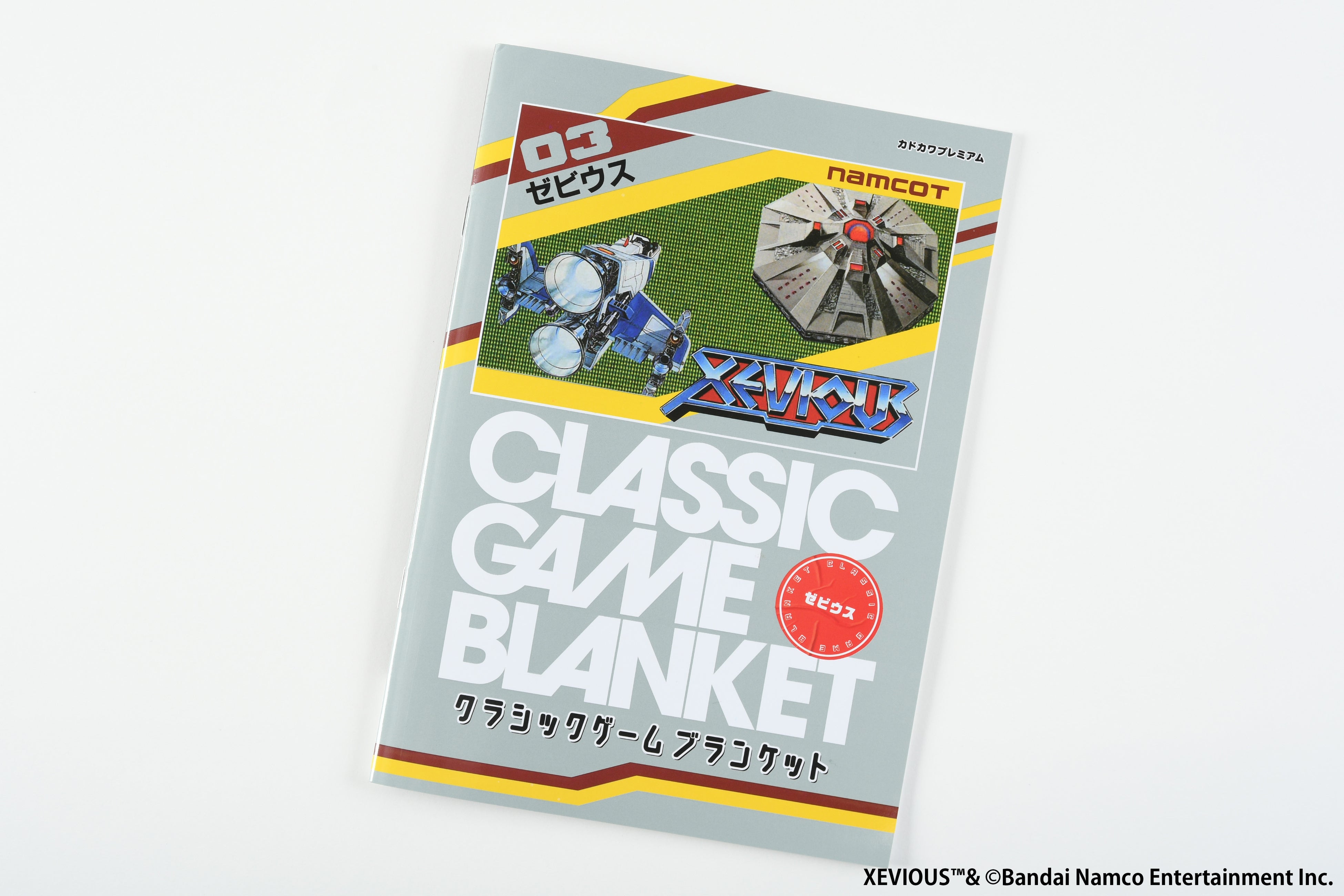 ナムコ(現・バンダイナムコエンターテインメント)の家庭用ゲーム機向けソフトのブランド”ナムコット”から発売されたファミリーコンピュータ用ソフト『パックマン』、『ゼビウス』、『ドルアーガの塔』の外箱をモチーフとしたデザインのブランケットが登場。ブランケット本体と外箱の表面と裏面に、ファミコン用ソフトの外箱のデザインを可能な限り忠実に再現しています。また、ナムコットのファミコンソフト30タイトルをまとめたA5サイズの16ページの冊子も同梱しています。