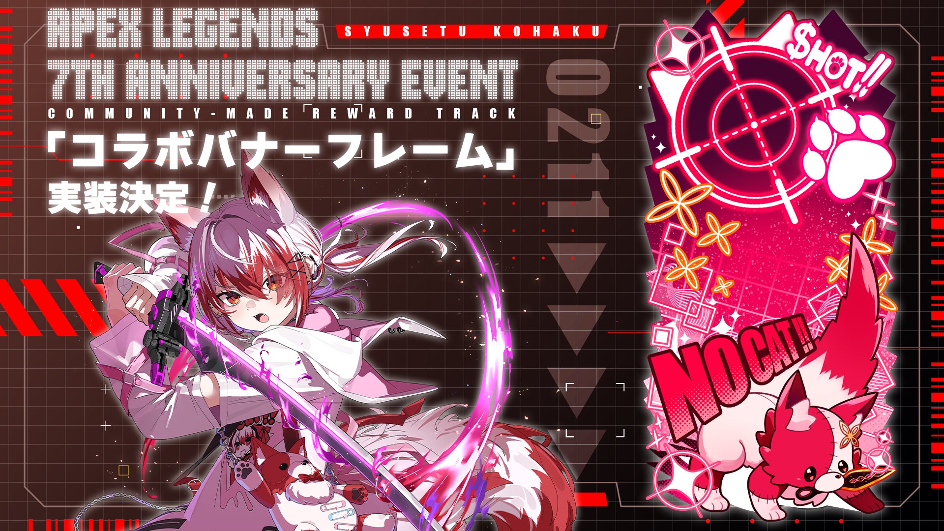 株式会社REJECT(本社:東京都港区、代表取締役:甲山翔也)が運営するeスポーツチーム「REJECT」は、「REJECT」所属ストリーマー・秋雪こはくをモチーフとした『Apex Legends』のゲーム内コラボバナーフレームが、7周年アニバーサリー期間中のコラボアイテムとして実装されることをお知らせいたします。