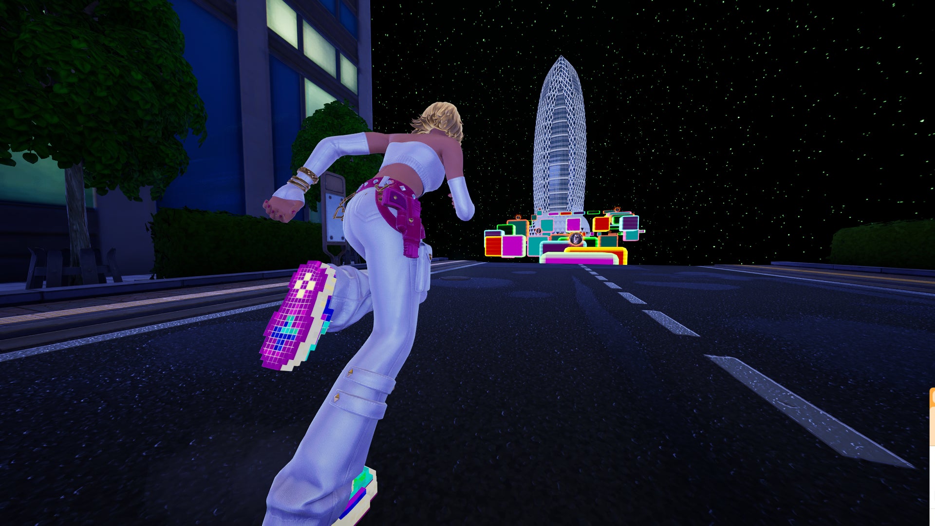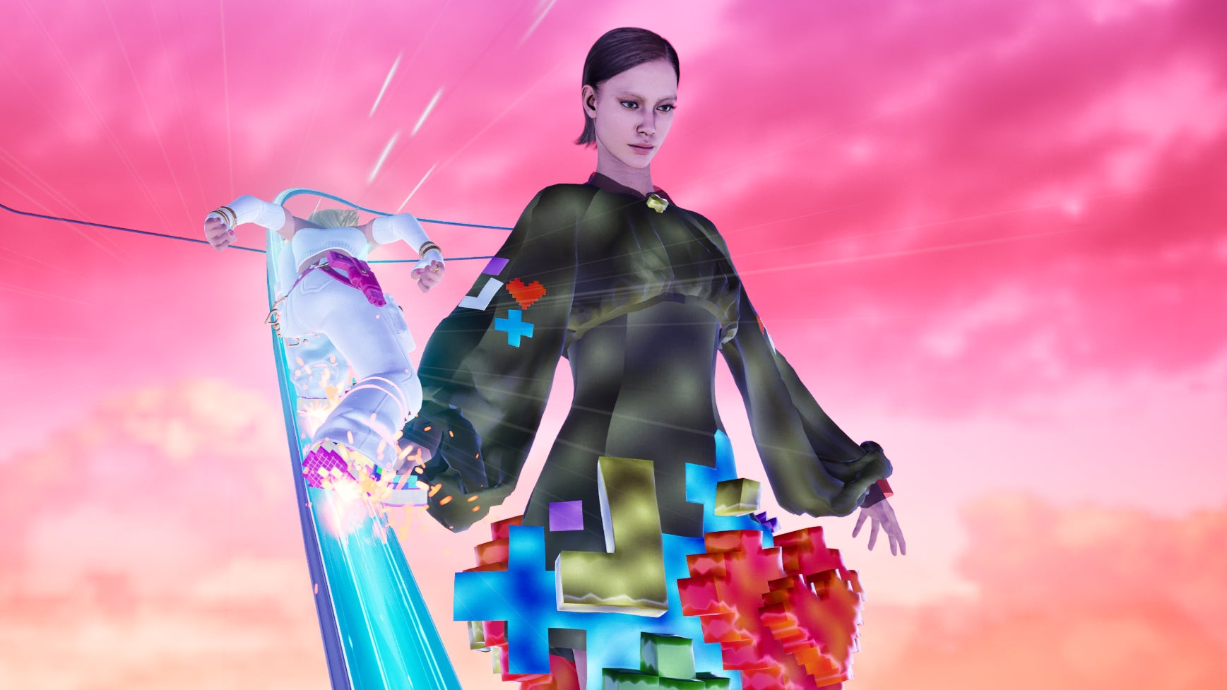 特設マップ『MODE DIGITAL FASHION AWARD』では、勝ち抜いた5作品を巨大なモデルとして展示。プレイヤーは「グラインドレール」で会場を駆け巡りながら、3Dならではの細部まで作り込まれたデザインを鑑賞・体験できます。