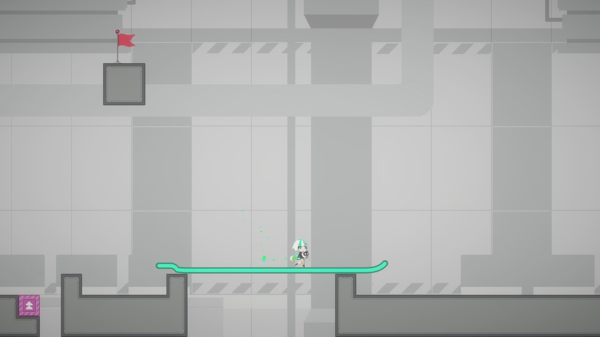 プレイヤーの移動した軌跡が、ボタン一つでそのまま足場や橋、時には巨大なギミックへと姿を変えます。空中を飛んだ跡を橋にしたり、円を描いて足場にしたりと、自由な発想で道を作り出せます。