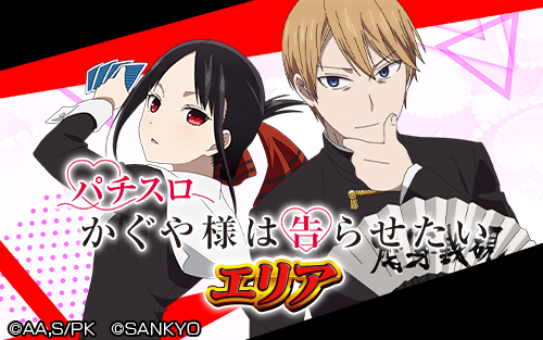 配信を開始した新機種アプリ『パチスロ かぐや様は告らせたい』のみが設置された、全台高設定の配信記念特別エリアを公開いたしました。アイテム使用の制限なくプレイ可能で、パチドルの大量獲得や「マイレコ!」達成を目指して遊技いただけます。